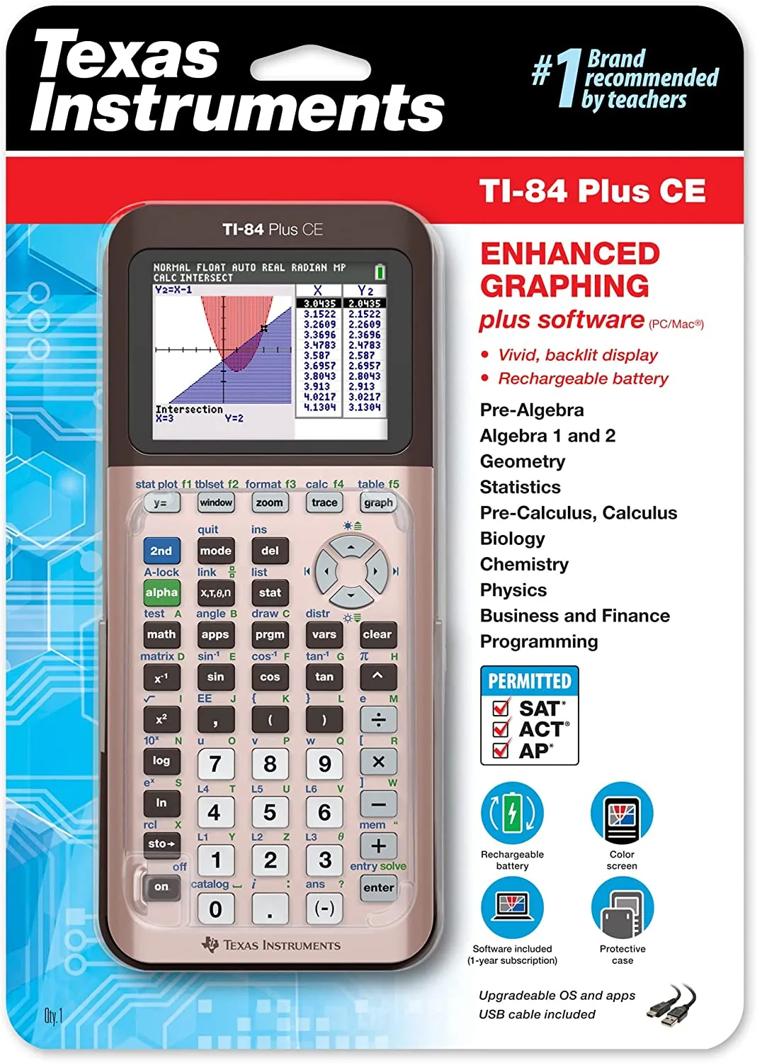 The Texas Instruments TI-84 Plus CE in a stunning Rose Gold finish is designed to enhance your math and science learning experience.