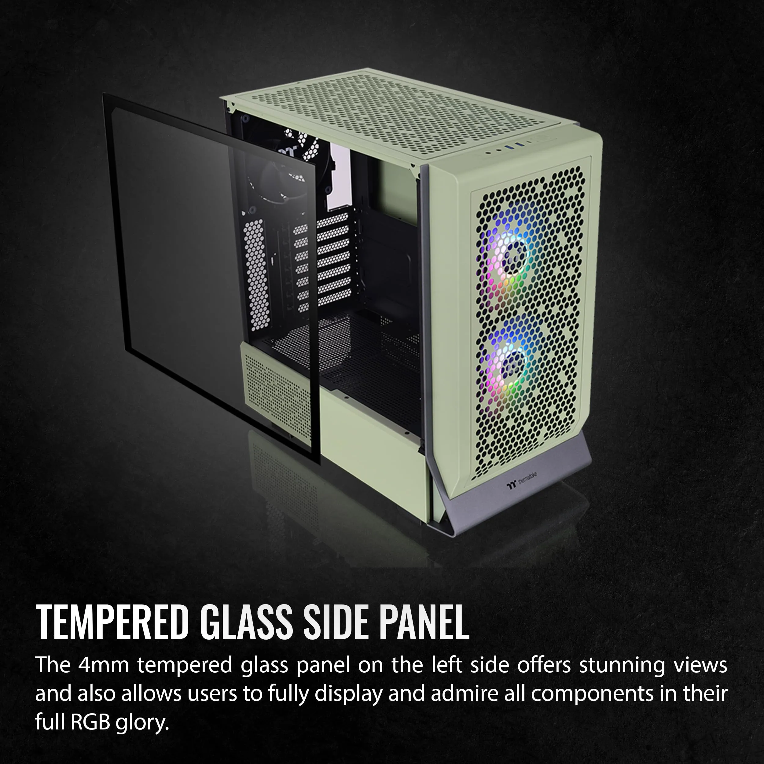 - Tempered glass side panel for showcasing your build