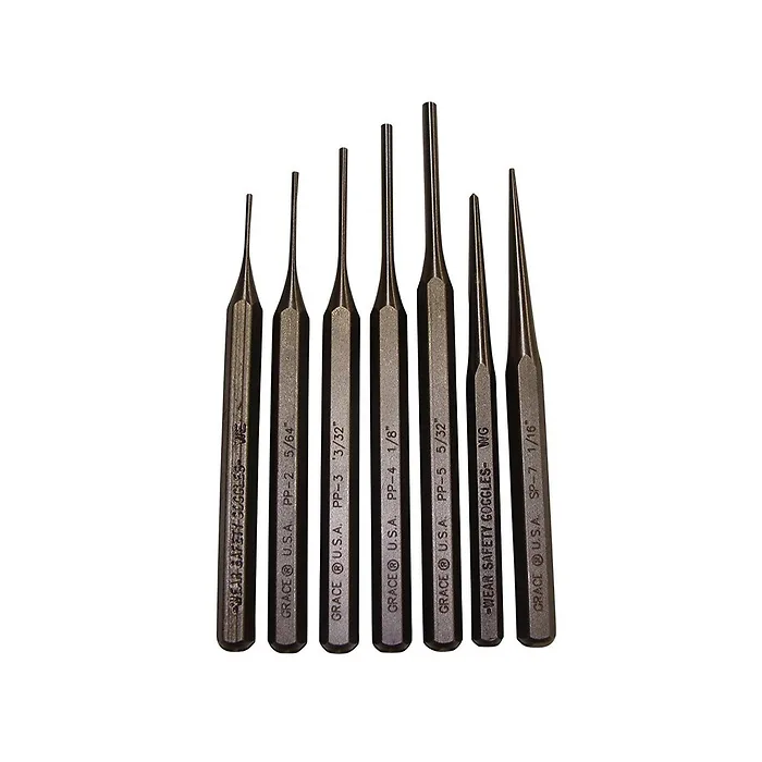 Grace GRPS7 This Beautifully Crafted Punches In This 7 Piece Punch Set Are Machined From Steel And Are Nickelchrome Plated.lt;brgt;lt;brgt;this 7 Piece Punch Set Are Machined From Steel And Are Nickelchrome Platedlt;brgt;lt;brgt;set Includes Sizes 564 116 332 18 And 532 1 Center Punch And 1 Starter Punchlt;brgt;lt;brgt;the Set Comes In A Vinyl Pouchlt;brgt;lt;brgt;beautifully Crafted Puncheslt;brgt;lt;brgt;lifetime Guaranteelt;brgt;lt;brgt;na