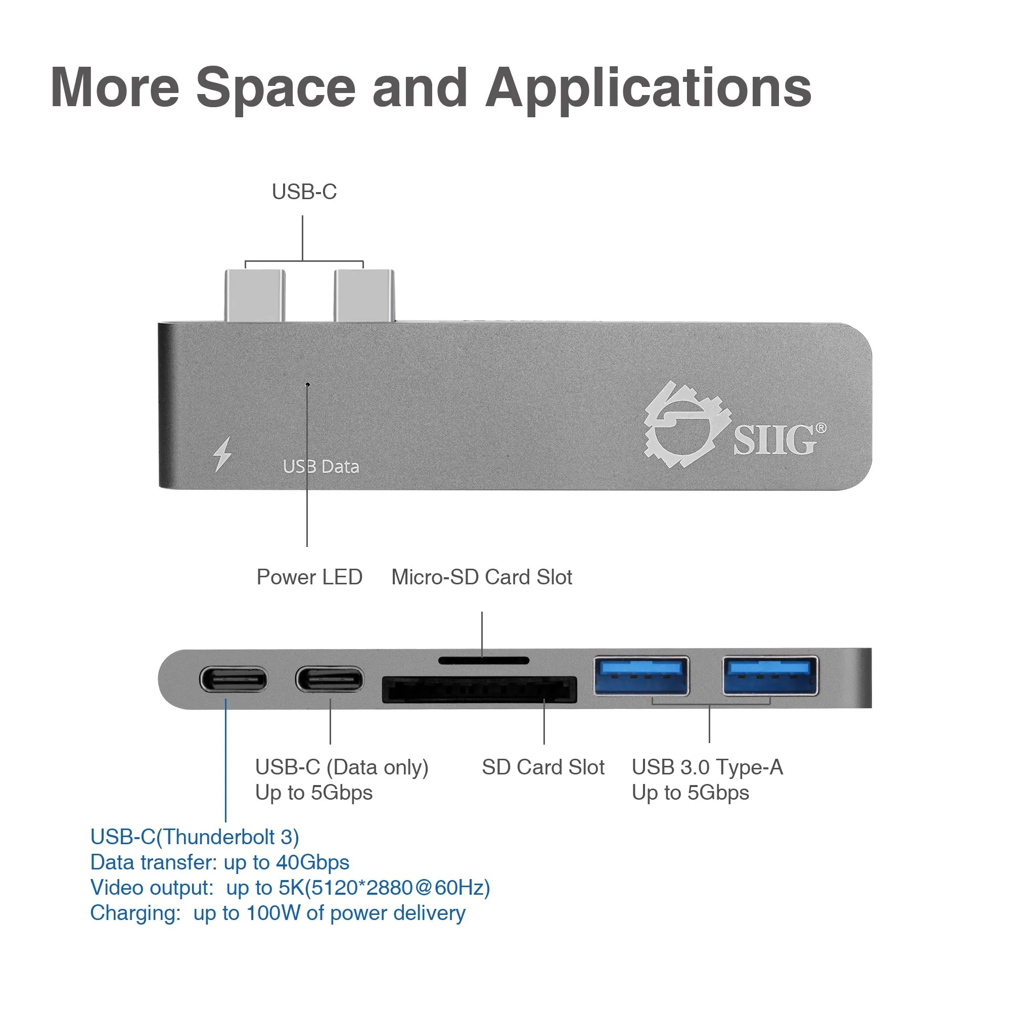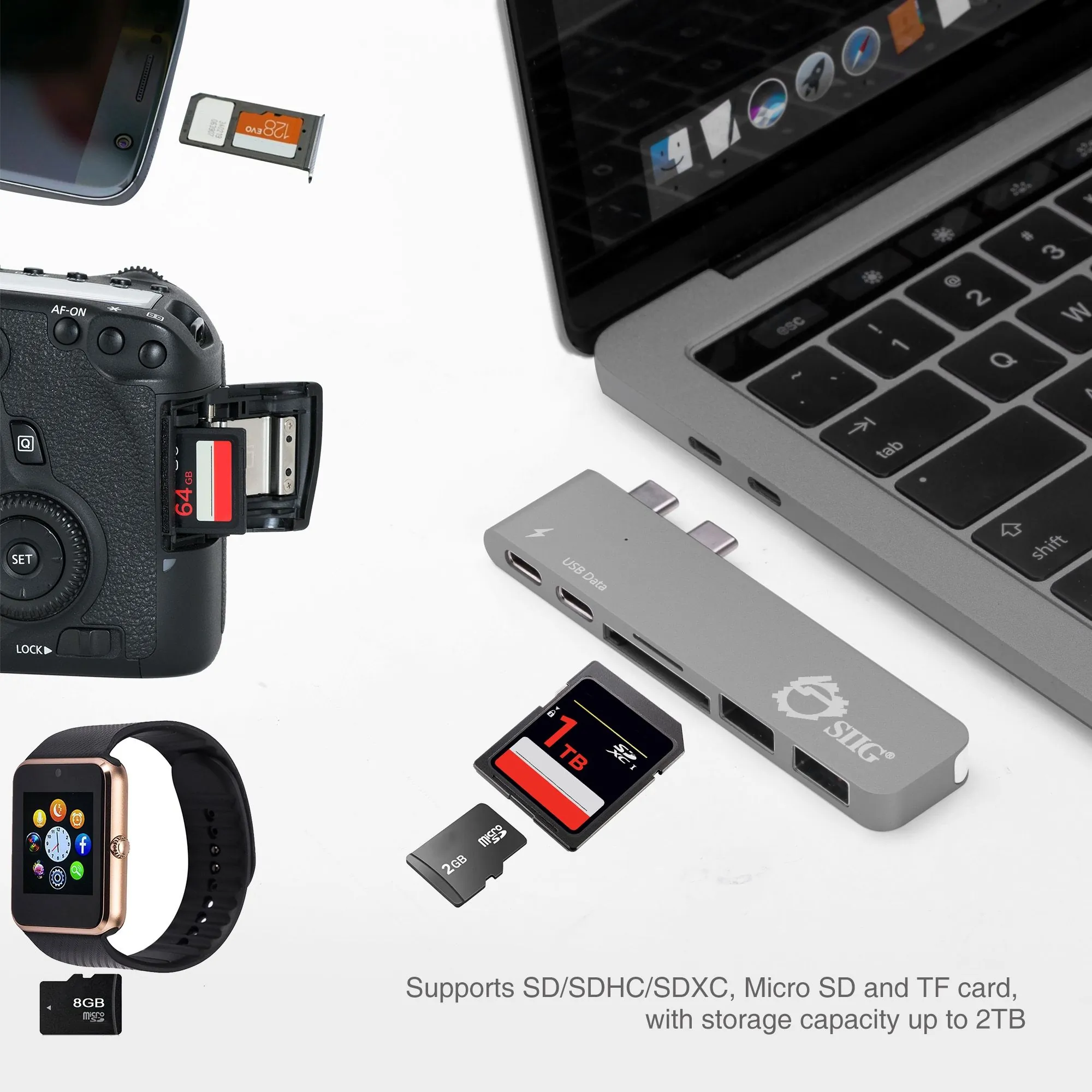 Siig JU-TB0312-S1 Thunderbolt Certified Thunderbolt 3 Usbc Hub With Card Reader Amp; Pd Adapter Spac