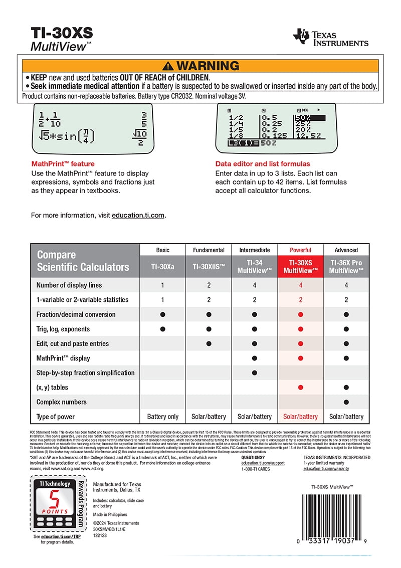 TI-30XS MultiView Calculator. Displays multiple calculations and answers as you would write on paper. Easily scroll, review and edit current or previous entries.