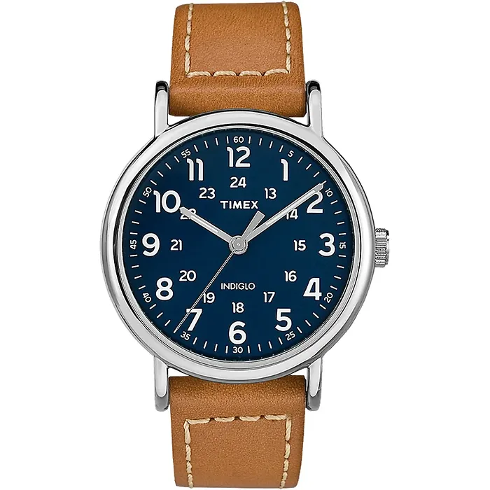 Timex TW2R425009J Weekender 40mm Men39;s Watch Tan Leather Strap Wblue Dial