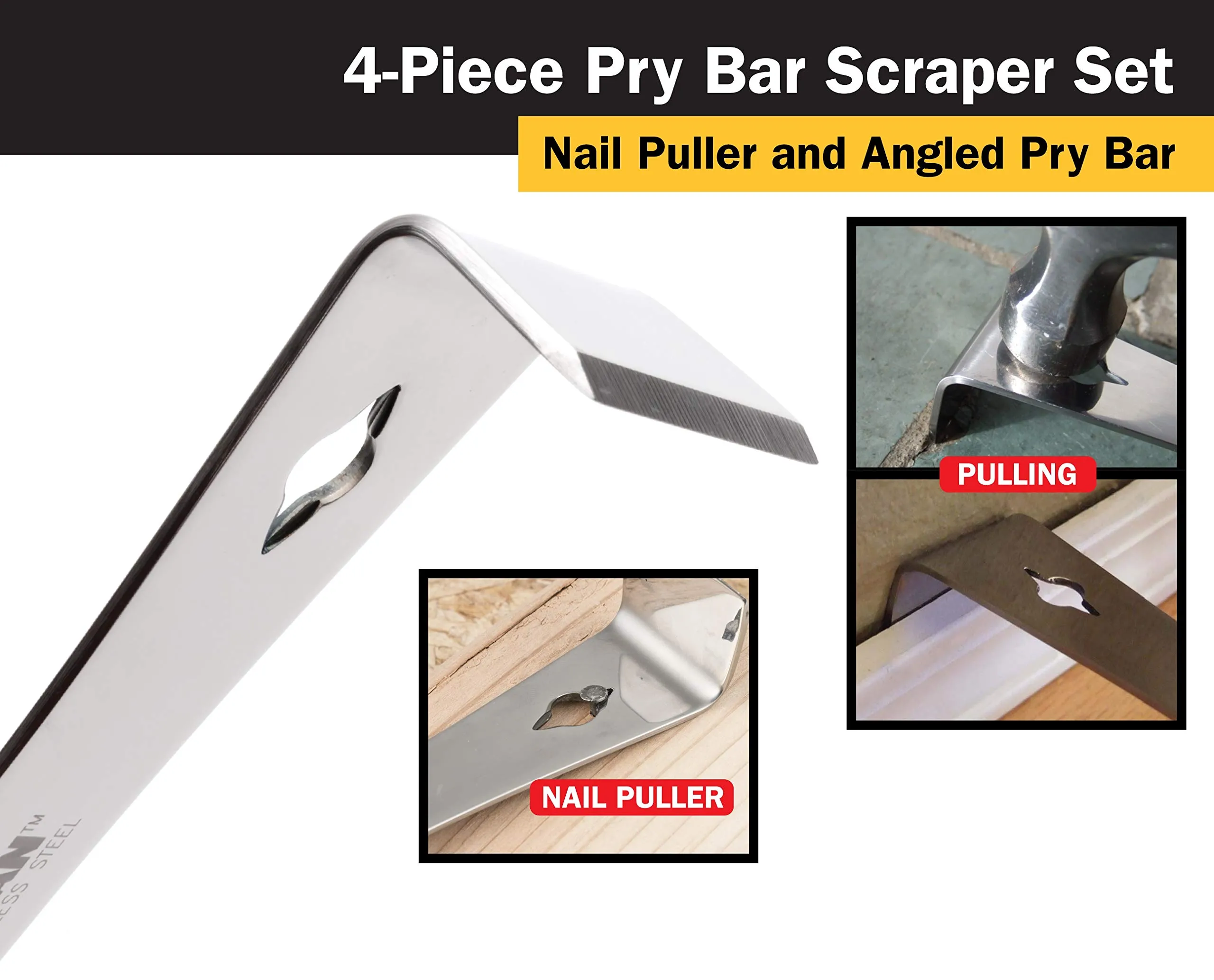 The Titan 4-Piece Pry Bar Set is a premium collection of tools designed for heavy-duty use. Made from high-quality stainless steel, these pry bars are rust-resistant and built to last. They are perfect for lifting, prying, and repositioning heavy objects in various applications, making them an essential addition to any toolbox.