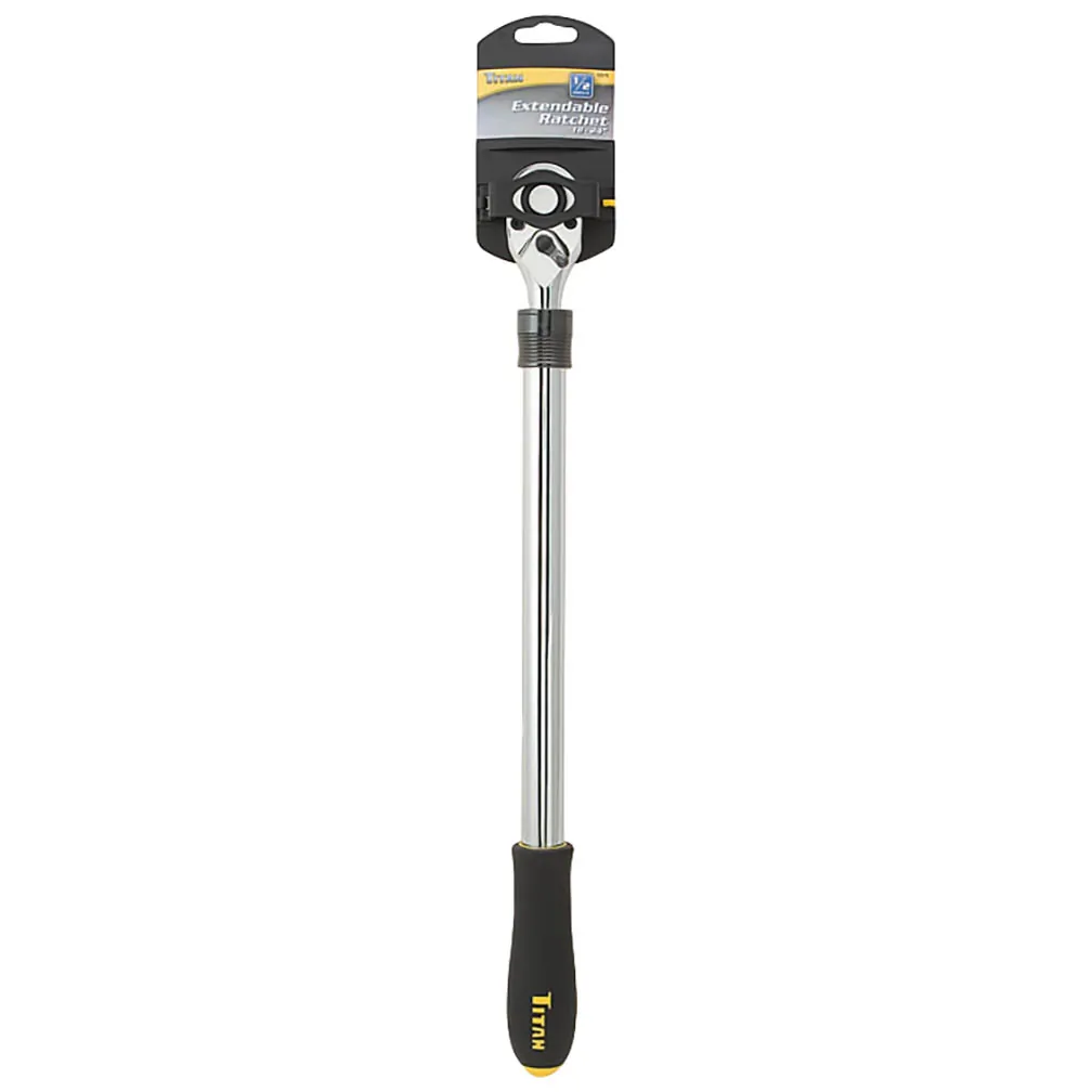 The Titan Tool 1/2" Drive Extendable Ratchet is designed for strength and comfort. This versatile tool features an extendable handle that allows for greater reach and leverage, perfect for tight spots and heavy-duty jobs.