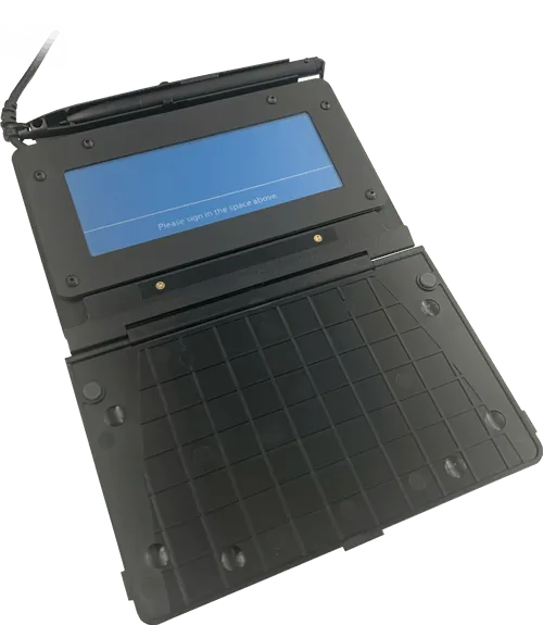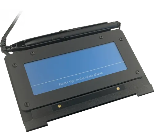SigLite® Slim 1x5 is Topaz's lower-cost, pressure-sensitive compact (4.3”W x 1.4"L) electronic signature pad with a thin 0.20" profile for extreme portability. It features all the high-quality biometric and forensic capture techniques of a SignatureGem® pad but with a lower-cost touchpad and stylus in place of the more durable signing surface and active electromagnetic pen.