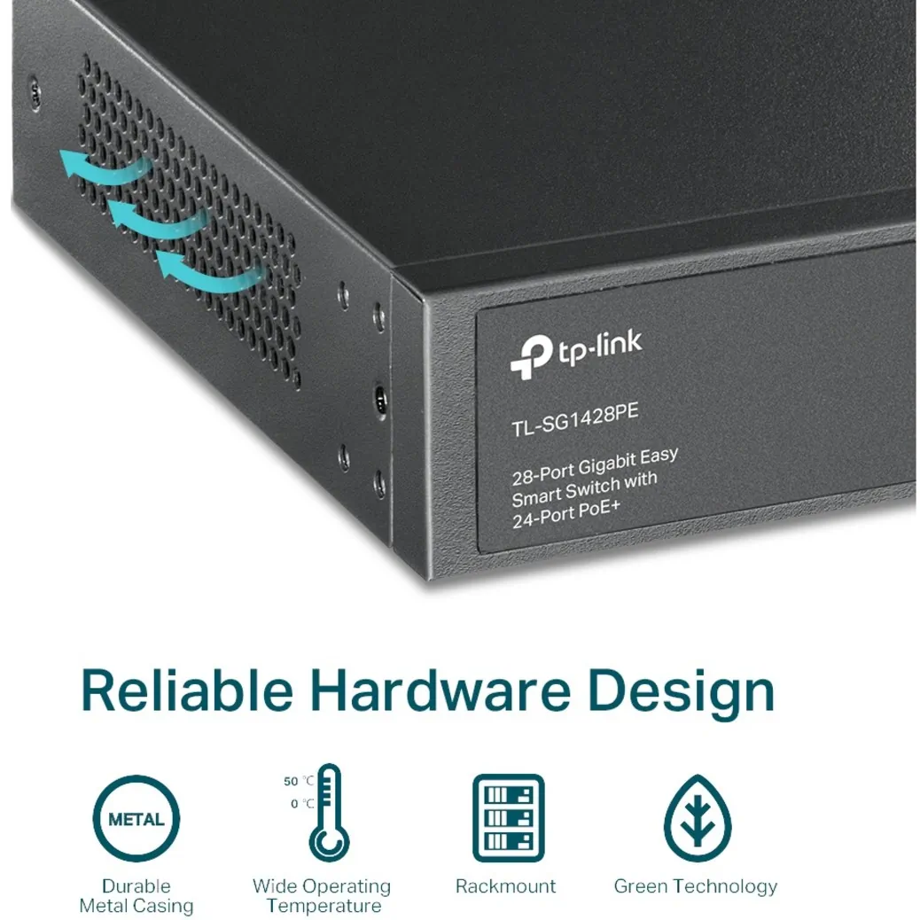 The TP-Link TL-SG1428PE is an advanced 28-port Gigabit Easy Smart Switch designed for small to medium-sized business environments.