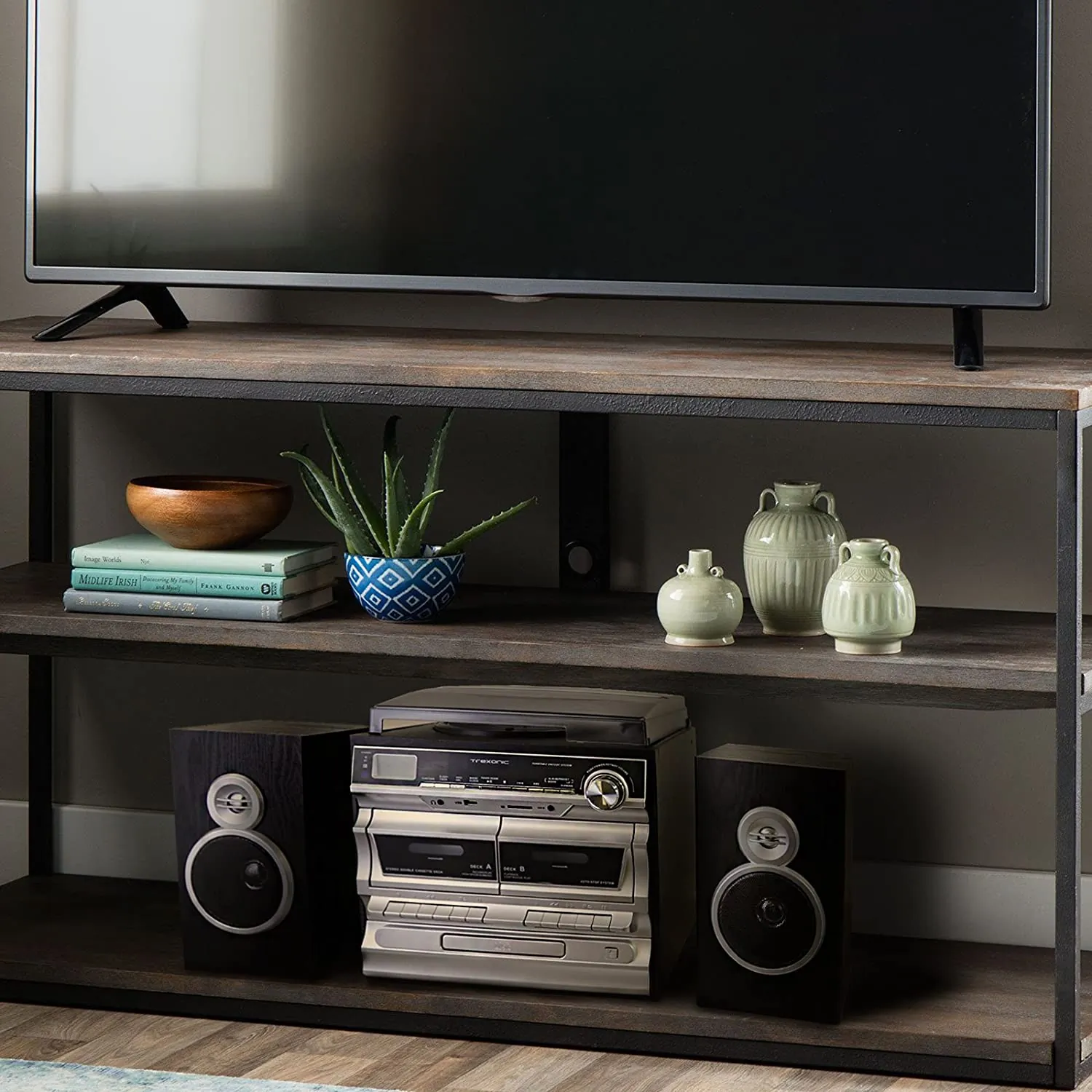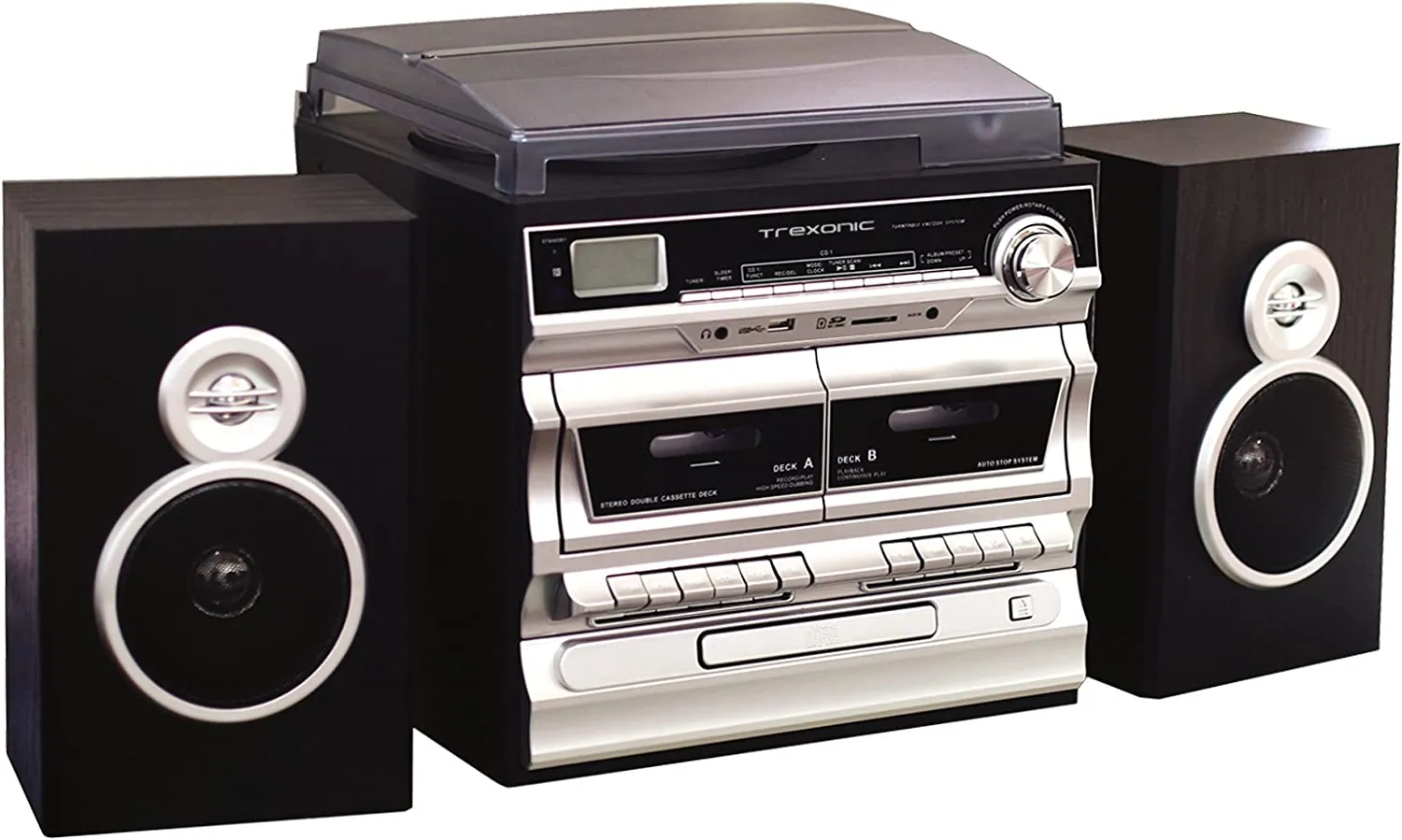 Trexonic TRX-11BS 3speed Vinyl Turntable Home Stereo System With Cd Player Double Cassette Player Bluetooth Fm Radio Amp; Usbsd Recording