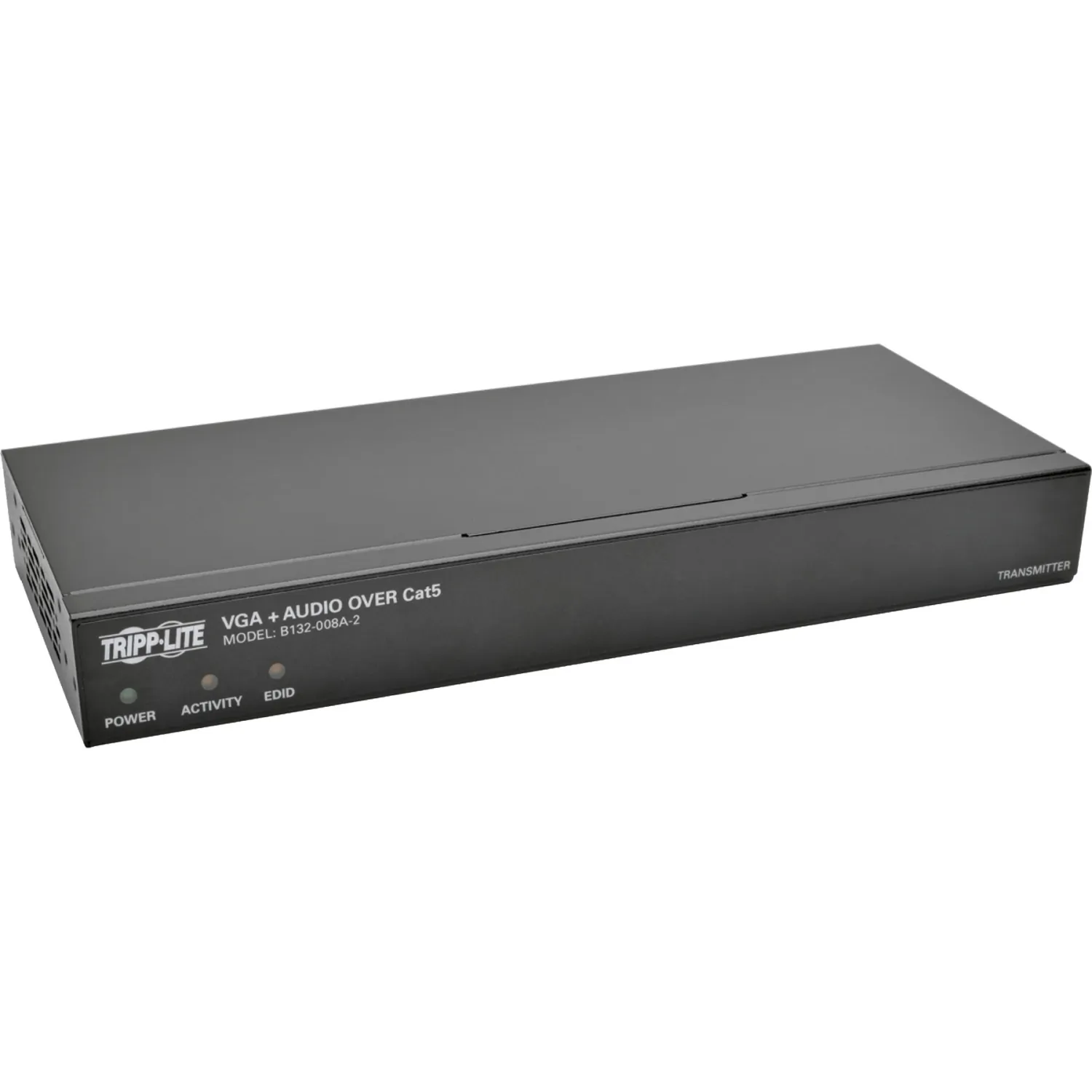 General InformationThe B132-008A-2 8-Port VGA + Audio over Cat5/Cat6 Extender/Splitter works with a B132-100A or B132-100A-WP-1 remote receiver to split a VGA audio/video signal into nine separate signals-one local and eight remote. It's ideal for digital signs, trade shows and other applications where the video source is located farther than conventional cables allow or that require multiple displays connected to one source. The B132-008A-2 uses VGA cable(such as Tripp Lite's P504-Series) to connect to the source and displays and Cat5e/6 cable to transmit to the remote receivers. For best results, use 24 AWG solid-wire N022-01K-GY(Cat5e) or N222-01K-GY(Cat6) cable.When used with Tripp Lite's B132-Series active remote receivers, the B132-008A-2 can extend a 1920 x 1440(60 Hz) signal up to 500 feet and a 1024 x 768(60 Hz) signal up to 1,000 feet. By daisy-chaining up to six units, one audio/video source can transmit to as many as 49 displays-48 remote and one local.Add up to three B132-110A remote repeaters to each channel to fully extend the signal range or add more displays. You can extend a 1920 x 1440(60 Hz) signal up to 500 feet or a 1024 x 768(60 Hz) signal up to 1,000 feet from the first repeater in the chain to the last receiver. The B132-008A-2 also delivers high-quality audio and copies EDID information from a connected display to ensure optimal compatibility. Easy to set up with no Software Or Drivers To Install. Mounts To A Wall, Rack Or Pole Using The Included Hardware.Technical InformationConnectivity Technology: WiredNumber of Input Devices Supported: 1Maximum Operating Distance: 1000 ftVideoMaximum Video Resolution: 1920 x 1440Interfaces/PortsNetwork (RJ-45): YesVGA In: YesVGA Out: YesNumber of Network (RJ-45) Ports: 8Number of VGA Inputs: 1Number of VGA Outputs: 1Media & PerformanceMedia Type Supported: Twisted PairTwisted Pair Cable Standard: Category 6Physical CharacteristicsColor: BlackReceiver Height: 1.20"Receiver Width: 9.30"Receiver Depth: 3.90"Form Factor: Wall MountableForm Factor: Rack-mountableForm Factor: Pole-mountableReceiver Weight (Approximate): 1.50 lbMiscellaneousPackage Contents: B132-008A-2 8-Port VGA + Audio over Cat5/6 Extender Splitter External Power Supply (Input: 100-240V, 50/60 Hz, 0.5A; Output: 5V, 2A) VGA + Audio Daisy-Chain Cable, 1 ft. Mounting Hardware Owner'S Manual WarrantyLimited Warranty: 1 Year
