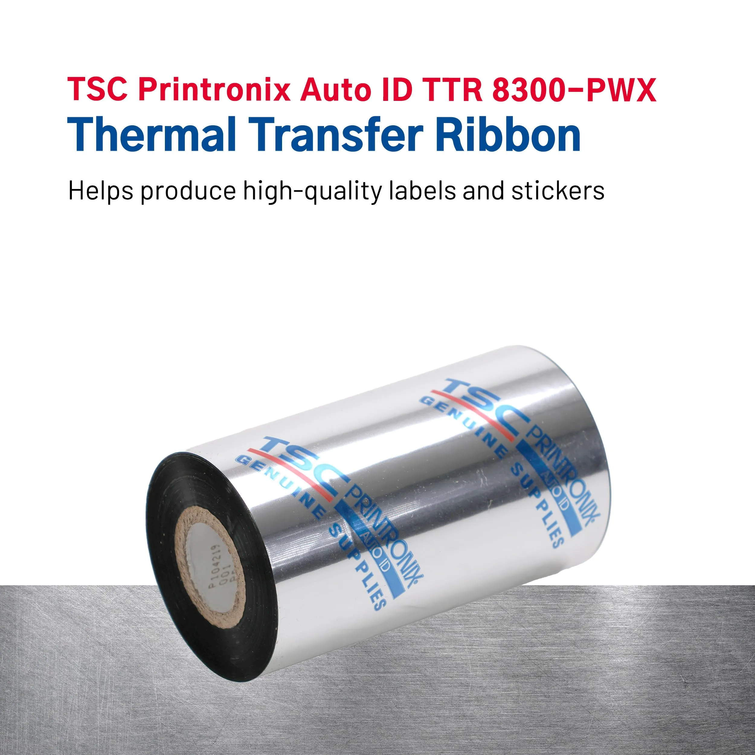 The TSC PTX 8300-PWX Premium Wax Ribbon is designed for high-quality thermal transfer printing. This ribbon is 110mm wide and comes in a length of 300 meters, making it ideal for various labeling applications.