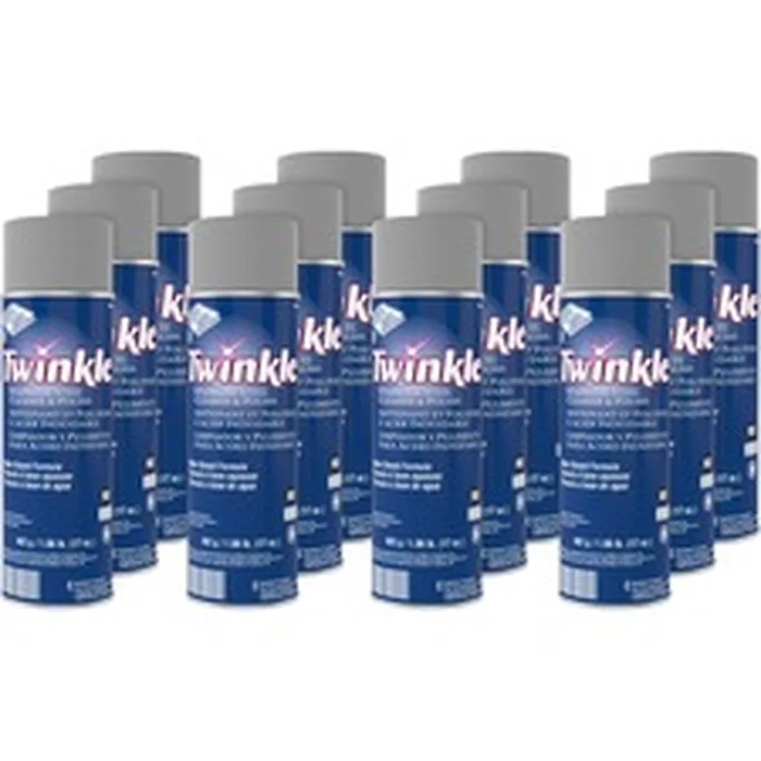 Stainless steel cleaner and polish removes grease, dirt, fingerprints, smudges and water marks from stainless steel, brass, aluminum and chrome. Water-based, aerosol formula leaves no residue or film. Twinkle Cleaner and Polish has a light lemon scent that's pleasant to use yet it is odorless after polishing. It contains no CFCs and is NSF C1 Registered.