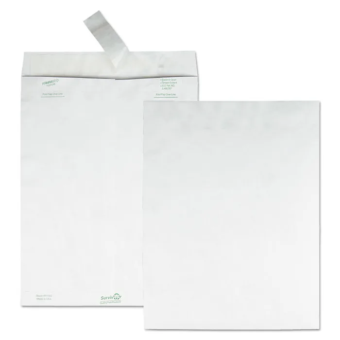 These Tyvek catalog mailers from DuPont are designed for secure and reliable shipping. Featuring a square flap and Redi-Strip closure, they ensure your documents arrive safely. Measuring 10 x 15 inches, these mailers are ideal for sending catalogs, brochures, and other important materials.