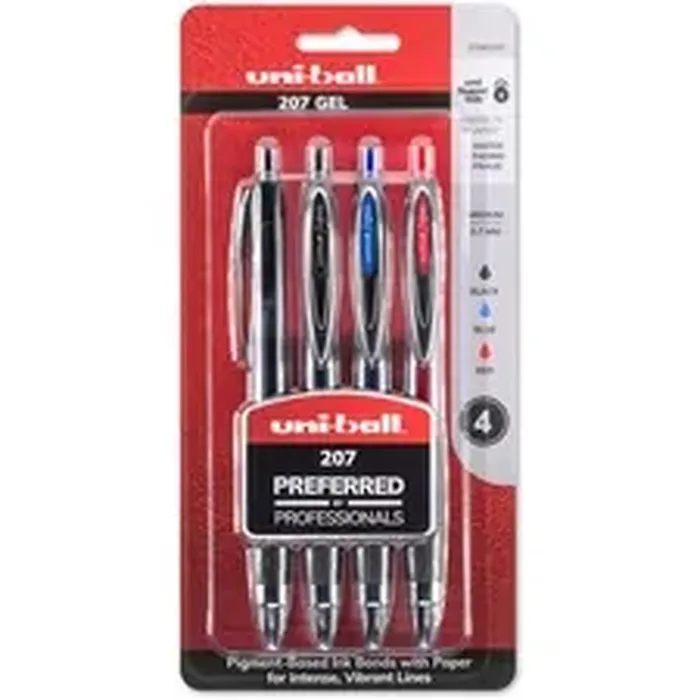 Uniball UBC 33961PP 207 Retractable Gel Medium Pen Point 0.7 Mm Pen Point Size Refillable Retractable Assorted Gelbased Ink 4 Pack