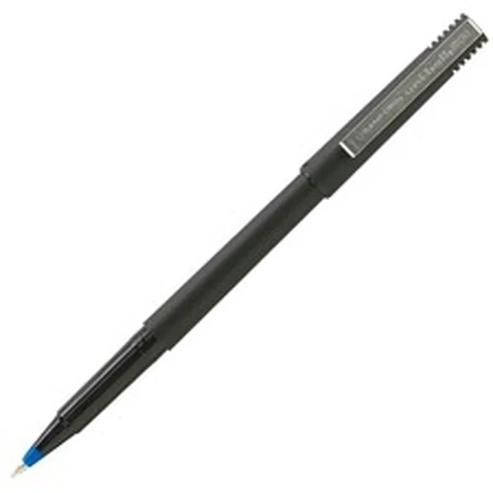Rollerball pen offers premium liquid ink and a black barrel with a strong metal clip. Uni Super Ink is specially formulated to become trapped in paper, helping prevent criminal check washing and other document alteration. Quick-drying ink prevents smudging. Archival-quality, acid-free ink is perfect for documenting and record-keeping. Ink color is indicated by tip and dot on cap. Use clip to attach rollerball pen to pockets, notebooks and more.