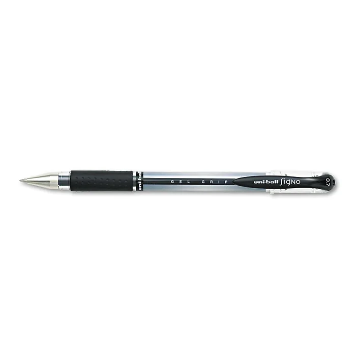 SIGNO GRIP GEL PEN, STICK, MEDIUM 0.7 MM, BLACK INK, SILVER/BLACK BARREL, DOZEN