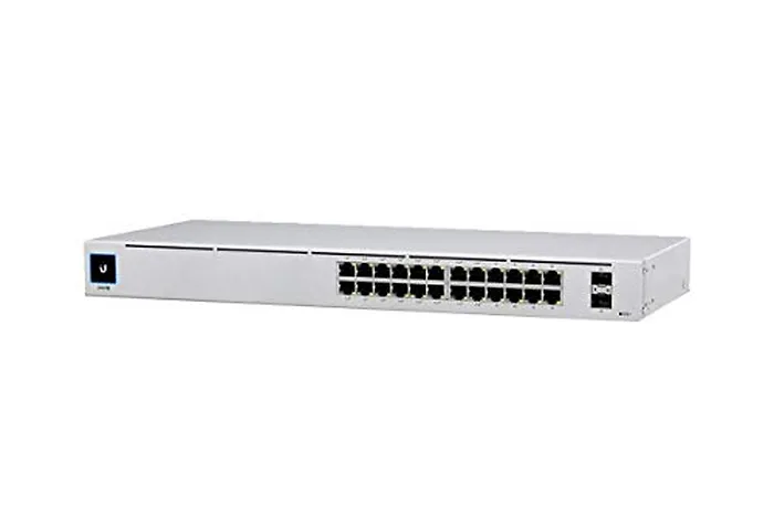 The UniFi 24-Port Gigabit Switch is a high-performance networking solution designed for both commercial and enterprise environments. It offers Power over Ethernet (PoE) capabilities, allowing you to power your devices over the same cable used for data transmission, reducing clutter and simplifying installation.