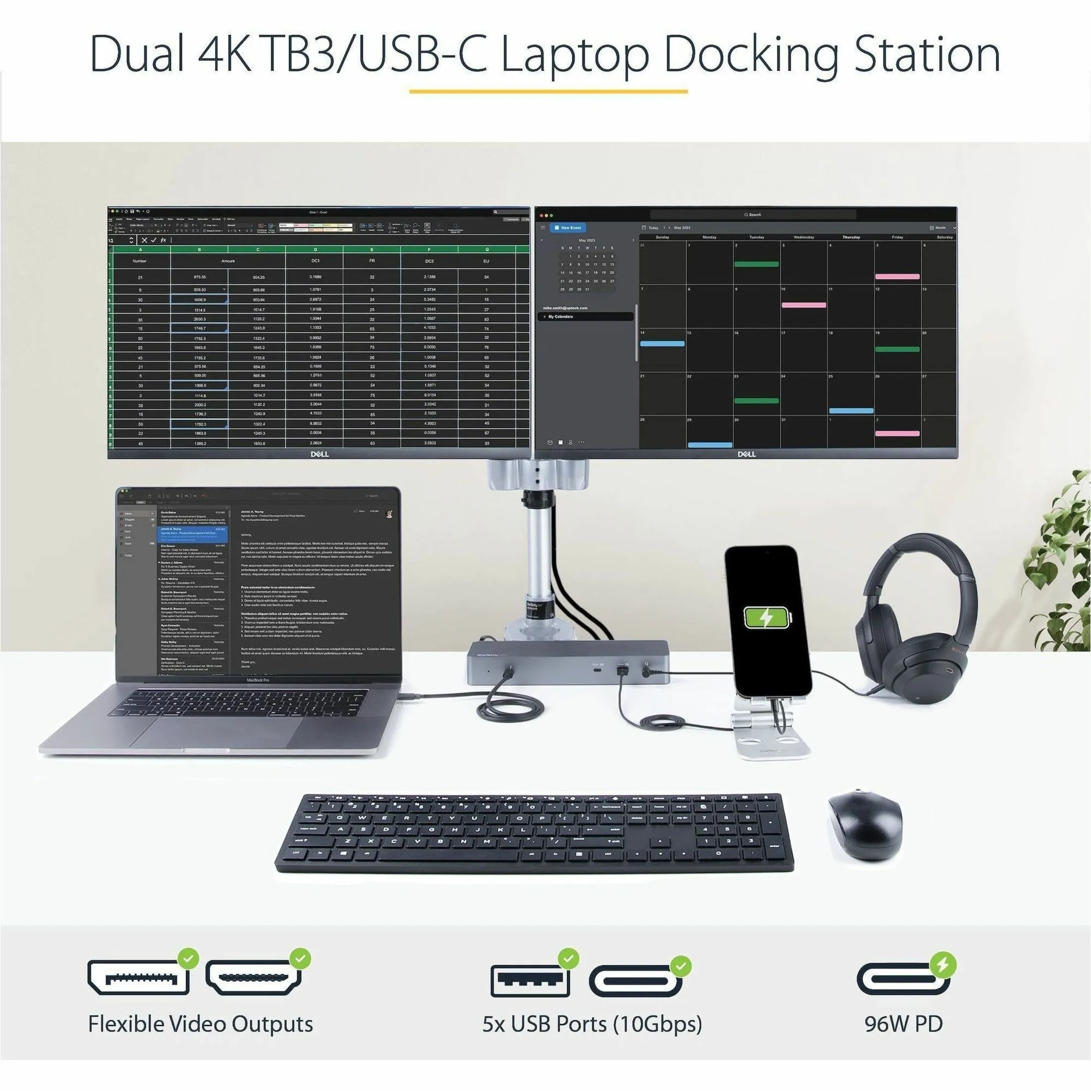Startech TB3CDK2DH Universal Thunderbolt 3 Dock For Tb3usb Typec Laptops Docking Station With D