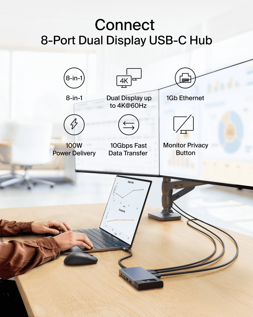 USB-C 8-IN-1 DUAL HDMI HUB WITH PRIVACY CONTROL