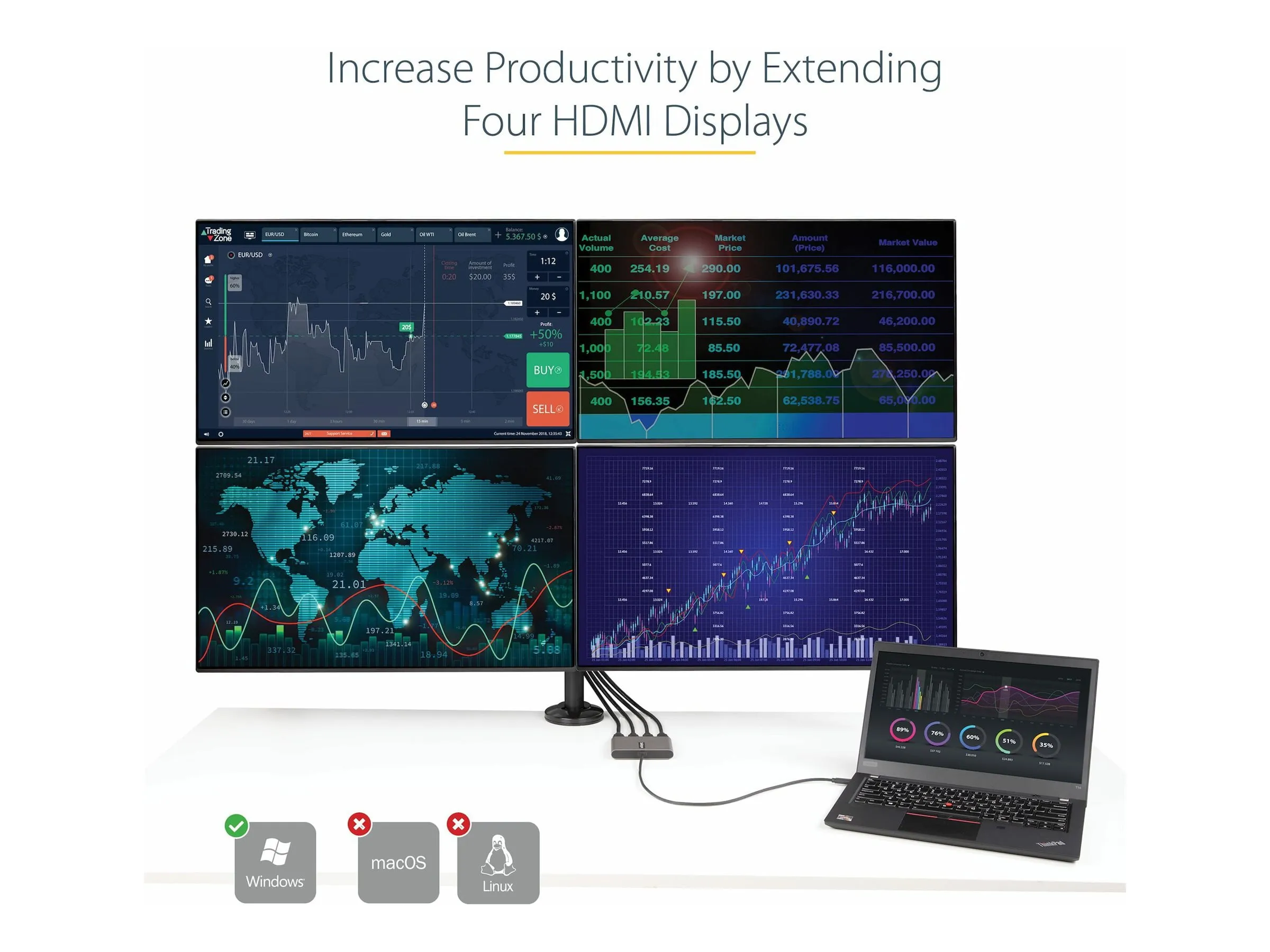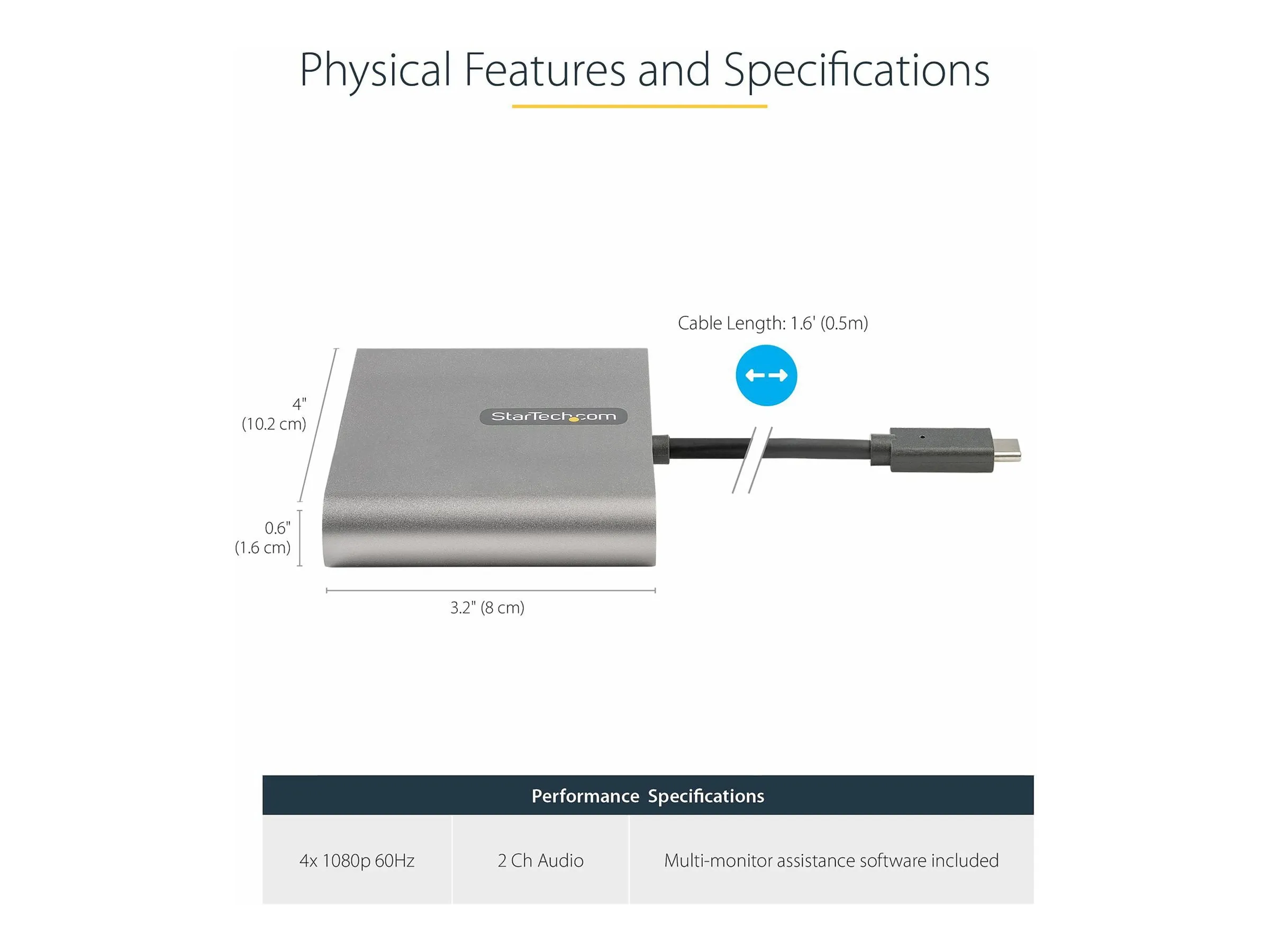 Startech USBC2HD4 Usb C To Quad Hdmi Adapter Usbc To 4x Hdmi Monitor Converter For Windows No S