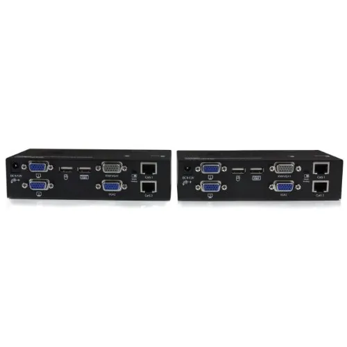 General InformationThe SV565DUTPU USB Dual VGA KVM Console Extender over CAT5 UTP lets you Operate a Dual VGA PC or KVM switch up to 650ft (200 m) away, as if it was installed locally, at high-definition 1920x1200 resolution. PC connection cables are included with this product for a ready to use solution. The dual VGA cat5 KVM extender supports easy to use hot-key and push button commands which allow you to switch between local and remote connected systems, while console connections at both ends of your setup provide easy access to all connected systems from either location. The hot-key commands also provide video adjustment controls for optimizing picture quality over varying distances. Extending over two standard Cat 5 (or better) cables gives you the ability to use existing infrastructure wiring to achieve remote access to your server or KVM switch. This product is TAA compliant and backed by a Startech.com 3-year warranty with free lifetime technical support.Technical InformationConnectivity Technology: WiredKVM Technology: AnalogNumber of Computers Supported: 2Number of Local Users Supported: 2Maximum Operating Distance: 650 ftVideoGraphic Mode: WUXGAMaximum Video Resolution: 1920 x 1200Interfaces/PortsNetwork (RJ-45): YesUSB: YesVGA: YesNumber of VGA Ports: 8Number of Network (RJ-45) Ports: 4Number of USB Ports: 4Power DescriptionInput Voltage: 120 V ACInput Voltage: 230 V ACInput Voltage Range: 110 V AC - 240 V ACPower Consumption: 5.40 WPhysical CharacteristicsForm Factor: DesktopTransmitter Height: 1.60"Transmitter Width: 3.10"Transmitter Depth: 6.10"Receiver Height: 1.60"Receiver Width: 3.10"Receiver Depth: 6.10"Transmitter Weight (Approximate): 1.18 lbReceiver Weight (Approximate): 1.18 lbMiscellaneousPackage Contents: 1 x Local Unit 1 x Remote Unit 2 x 6 ft 2-in-1 USB VGA KVM Cables 8 x Rubber Feet 1 x Universal Power Adapter (NA/EU/UK/AU) 1 x Instruction Manual Environmentally Friendly: YesEnvironmental Certification: RoHSEnvironmental Certification: WEEEEnvironmental Certification: REACHTAA Compliant: YesWarrantyLimited Warranty: 3 Year