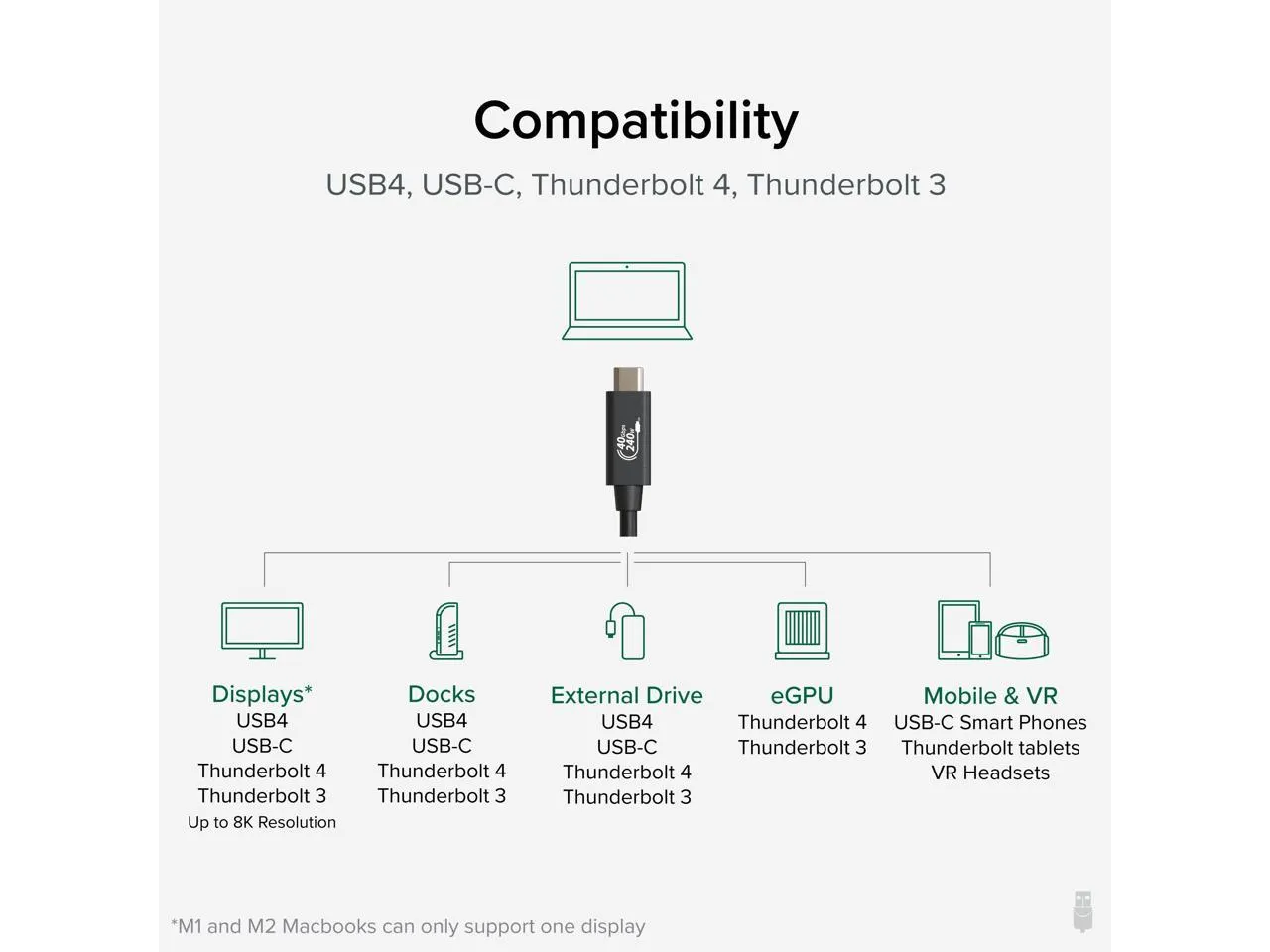 - Compatible with USB 4, Thunderbolt 4, and Thunderbolt 3 standards.