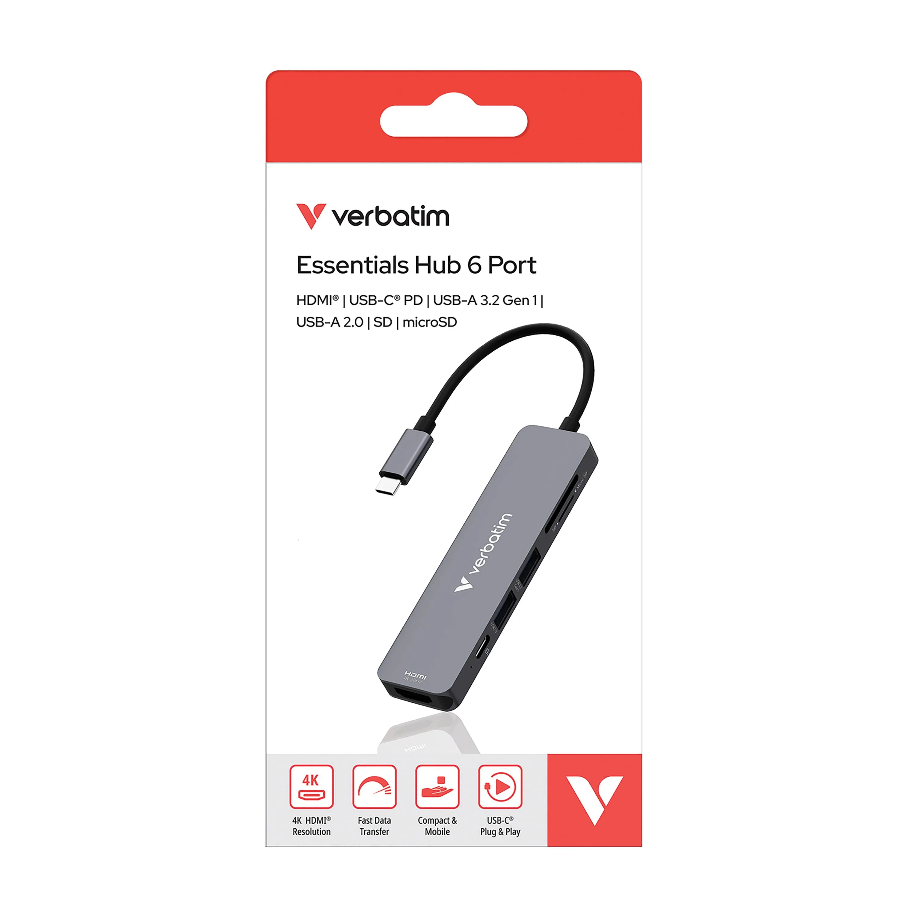 • Transform a single USB-C(R) port into 6 versatile ports, including USB 3.2 and HDMI(R), to connect a wide range of devices;• Experience swift data transfer with USB 3.2 Gen 1 technology up to 5 Gb/s, ensuring efficient workflows and minimal wait times; supports max power 5 volts/0.9 amps for connection device;• General USB-A 2.0 supports data transfer up to 480 Mbps;• Easy data transfer from cameras and other devices with SD(TM) Card and microSD(TM) Card slots with write speed up to 40 Mb/s and read speed up to 30 Mb/s;• HDMI(R) port supports high-resolution displays up to 4K 30-Hz resolution, making it ideal for presentations, watching movies, or expanding your workspace with crystal clear visuals;• Keep your devices charged while using the hub with pass-through charging capabilities (where supported) up to 100 watts, ensuring you never run out of battery during critical tasks;• Plastic-free packaging ;• Includes quick-start guide;