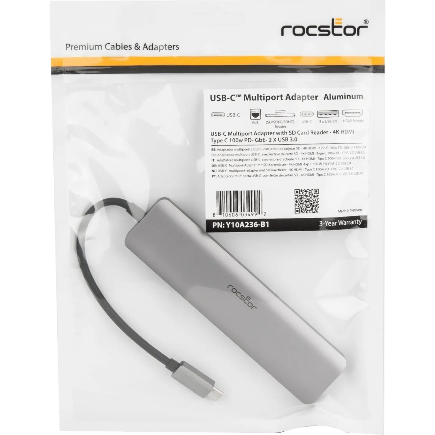 Rocstor Y10A236-A1 Usbc Multiport Adapteraluminum