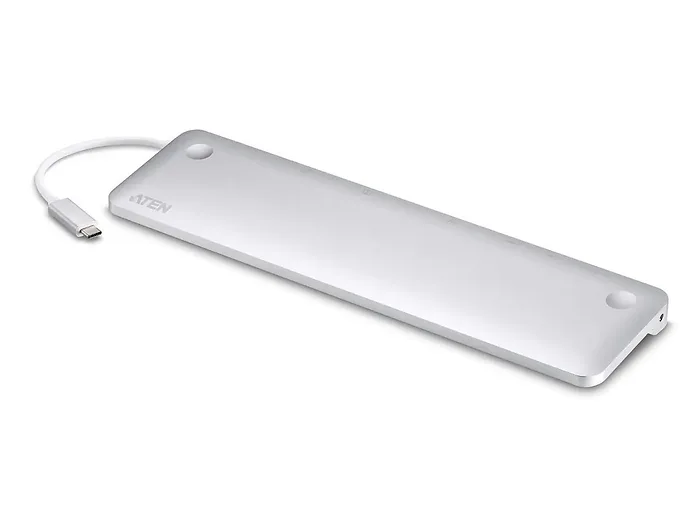 The ultra-sleek ATEN USB-C Multiport Dock with Power Pass-Through is a one-step total upgrade for your laptop that provides all the extra expansion you need. Simply use one cable to add up to 10 devices with power delivery pass-through to boost your productivity with extra HDMI, DisplayPort, VGA, USB3.1 Gen1, SD/MMC/MicroSD, Ethernet and audio connections.
