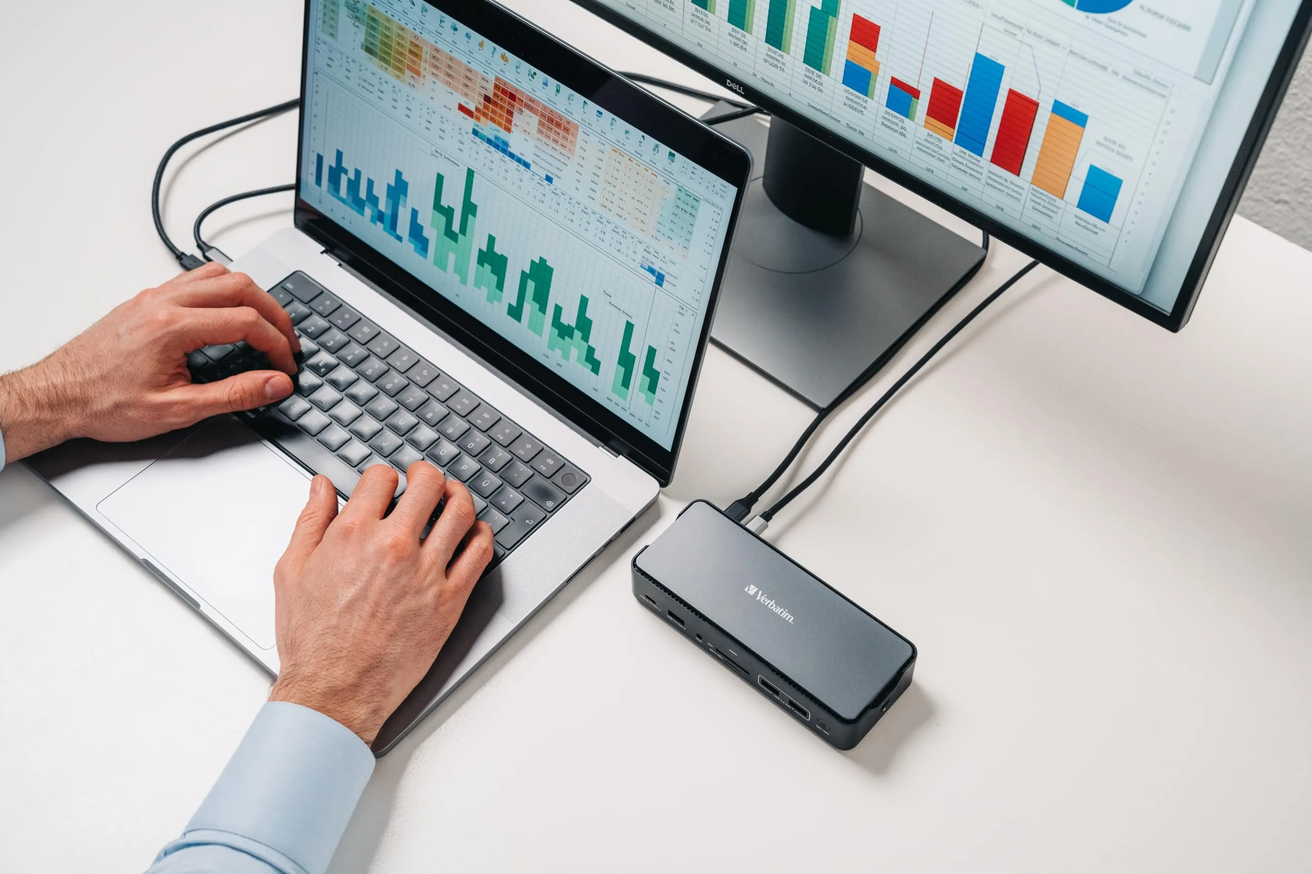 - Included: Verbatim USB-C Pro Docking Station, 3.3ft USB-C to USB-C cable, Quick Start Guide