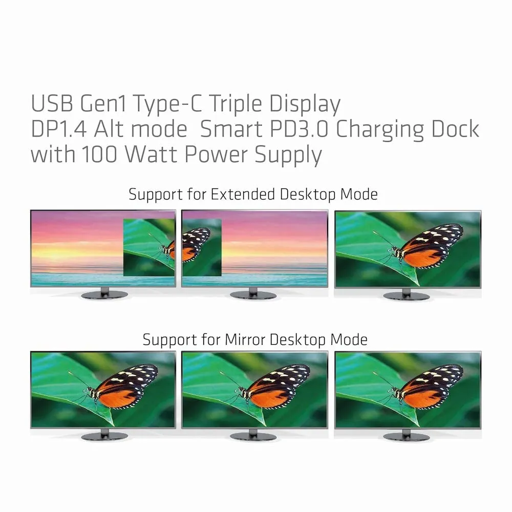 Elevate your workspace with our USB-C Triple Display Docking Station. Designed to support multiple displays simultaneously, this docking station allows you to expand your productivity with ease. Utilizing DP1.4 Alt Mode technology, it delivers stunning video output and efficient data transfer. With an output power of up to 100W via Power Delivery 3.0, you can charge your devices while connecting to peripherals without sacrificing performance.