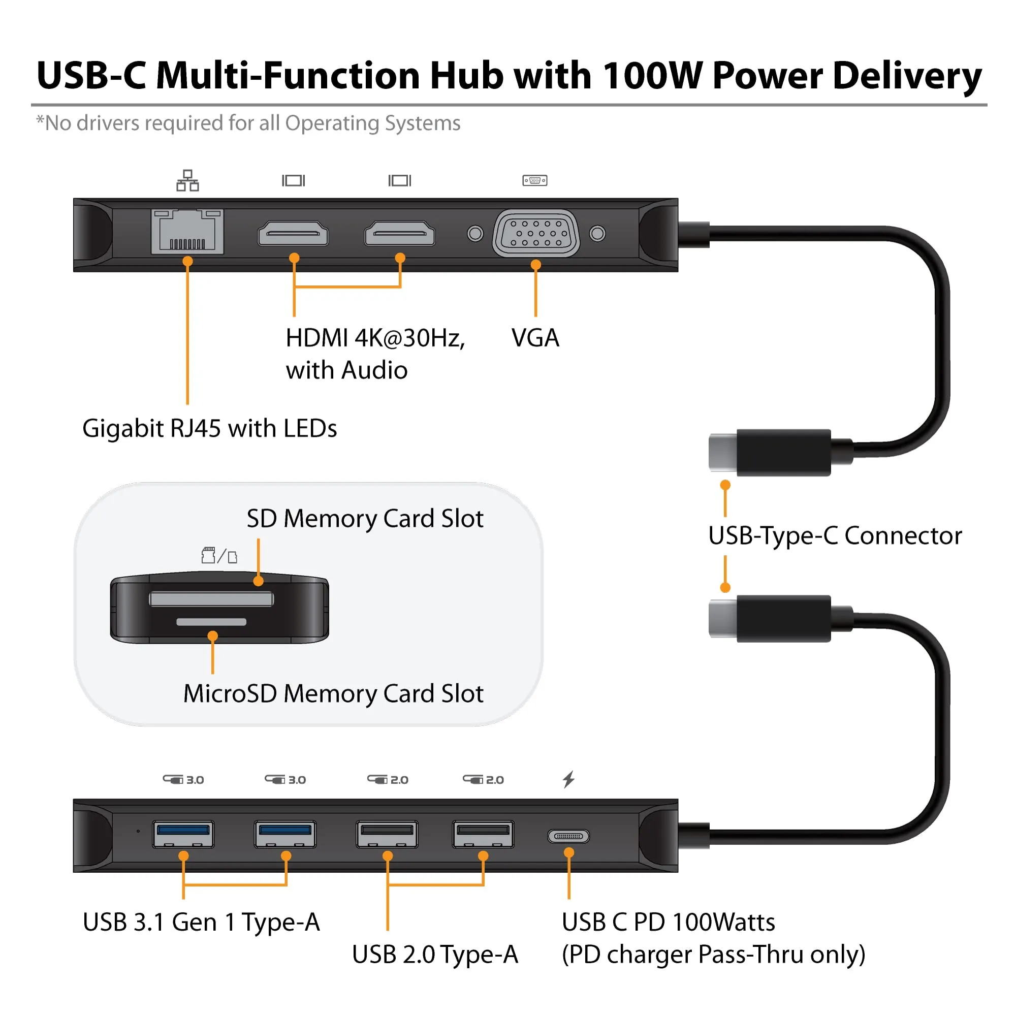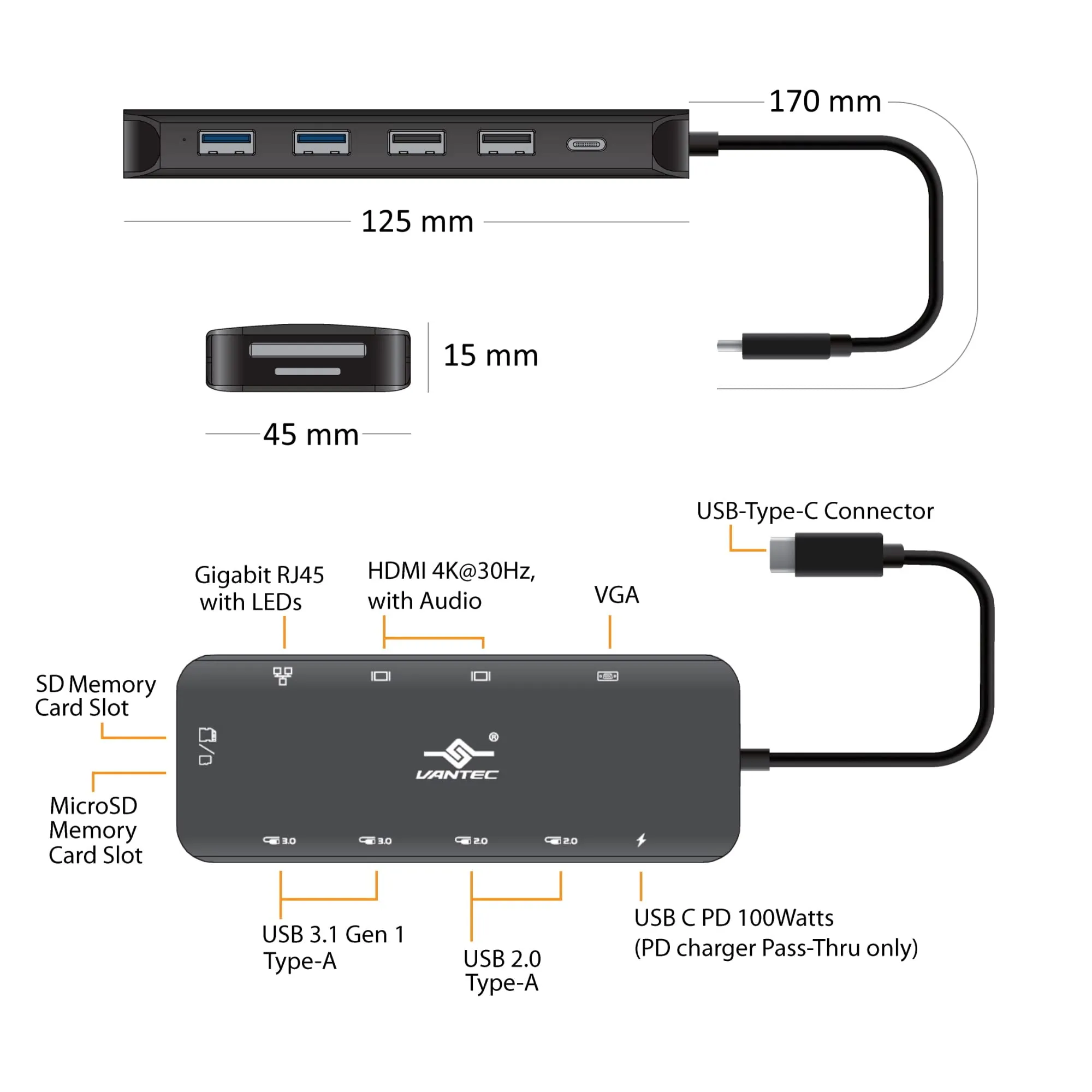 Vantec CB-CU302MDSH 100w Usbc Multifunction Hub With Power Delivery