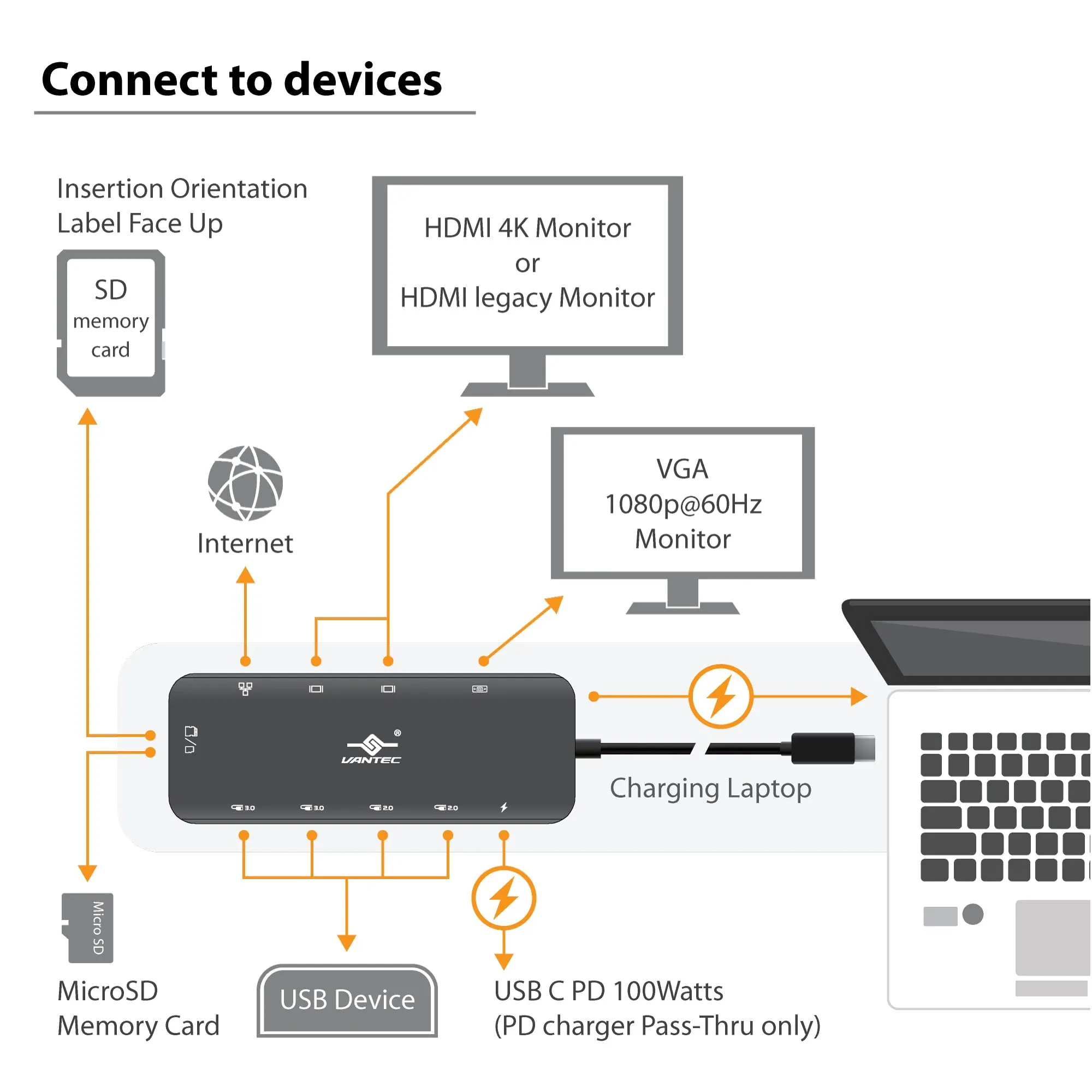 Equipped with 100W Power Delivery, it allows you to charge your devices quickly while simultaneously connecting them to additional peripherals. Ideal for laptops, tablets, and smartphones, this hub ensures you stay productive and connected.