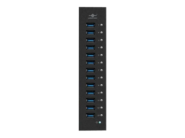 vantec 13-port usb 3.0 hub, aluminum, full powered, mountable, with all ports data & charging up to 1.5a, bc 1.2, premium 12v/5a power adapter (ugt-ah131u3-bk)