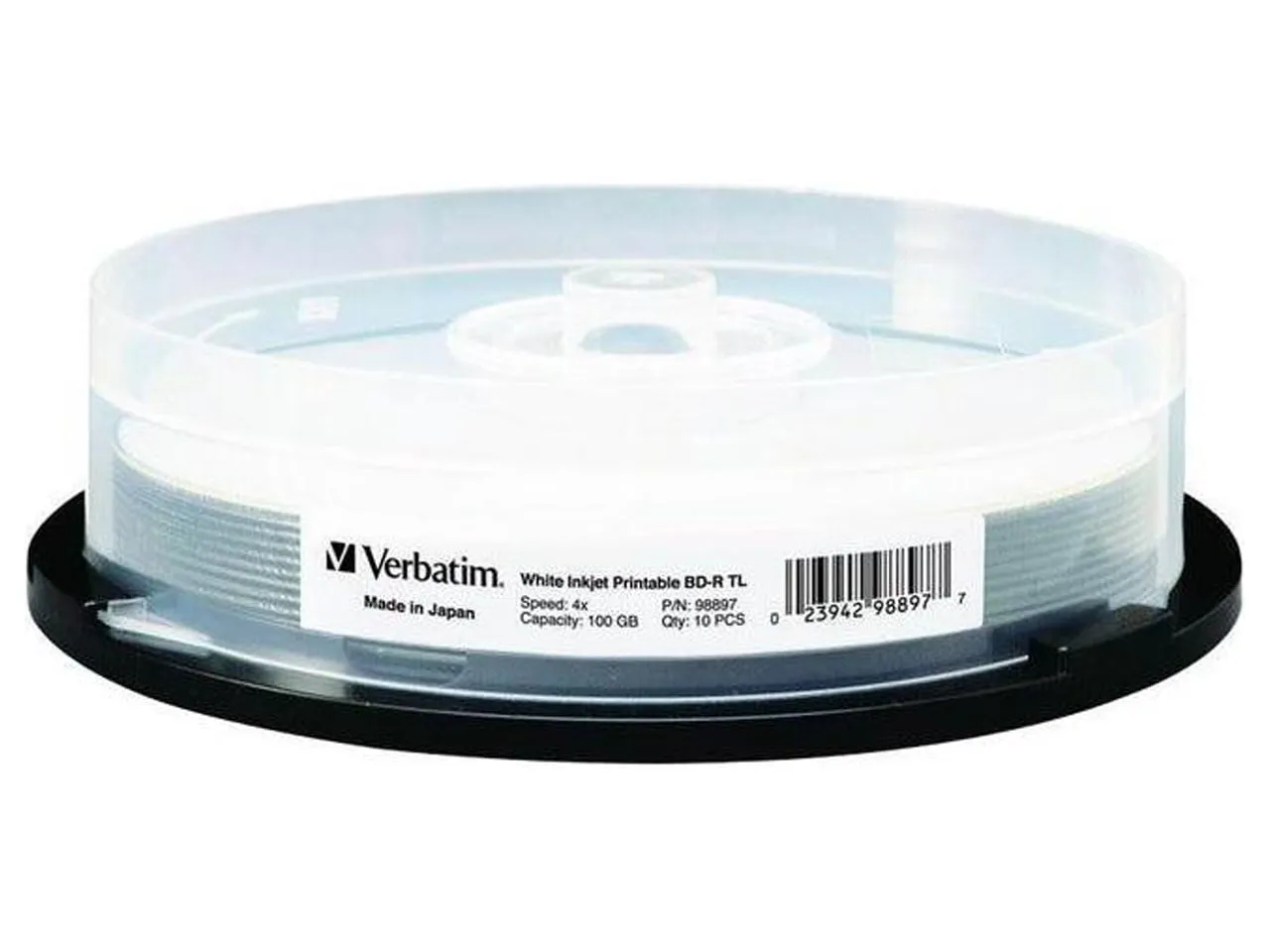 Verbatim 98897 Bdxl 100gb 4x White Inkjet Hub Printable10pk Spindle