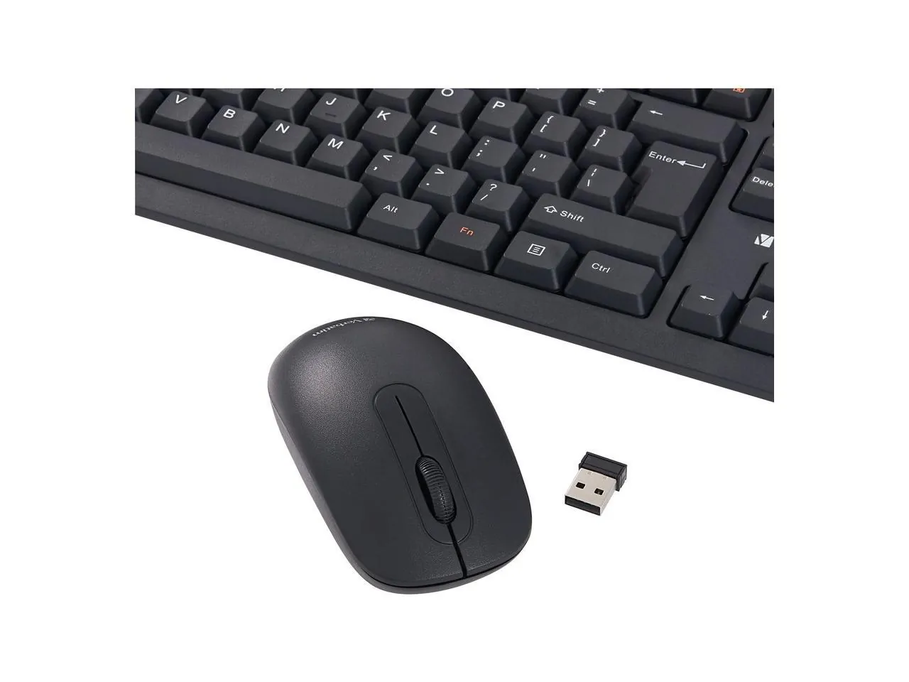Cut the cord with the Verbatim Wireless Keyboard and Mouse. This combo offers 2.4Ghz wireless communication, so there are no delays in what you type and what you see on-screen. The included nano receiver is small enough to plug in once and stay connected. Hot keys on the keyboard provide instant access to media controls, putting your music at your fingertips. The mouse features 1000 DPI, for higher precision and accuracy while clicking – and an ambidextrous design for right or left hand users.