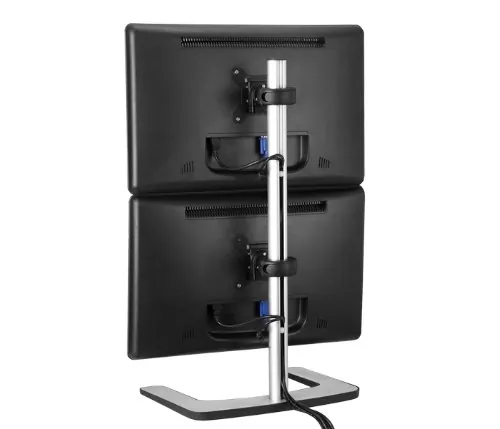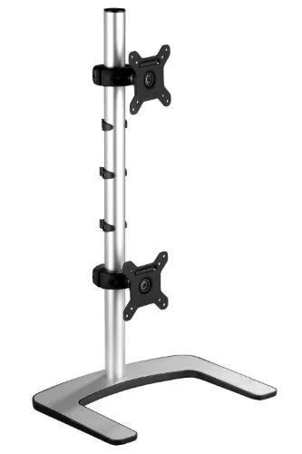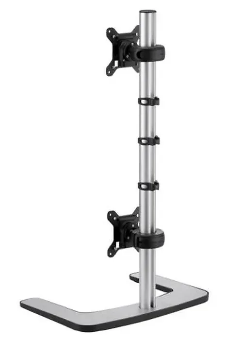 Supports LCD Flat Panel Displays from 12" to 27" , Supports a maximum weight of 526.5bs per display, Suits 75mm x 75mm and 100mm x 100mm VESA mounting hole patterns, Quick release for easy installation and adjustment, Distance from center of pole to rear of display 4", Maximum height to center of top display 29", Features +/-40 angular adjustment, Portrait/landscape rotation, Small Footprint of 16" wide x 12" deep, Advanced cable management, All Hardware included.