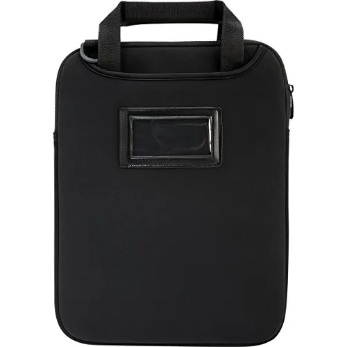 This 12-inch Vertical Slipcase is designed for your notebook or Chromebook. With its sleek black exterior and hideaway handles, it offers both style and functionality. The durable material ensures long-lasting protection for your device, while the space-efficient design allows for easy storage and transport.