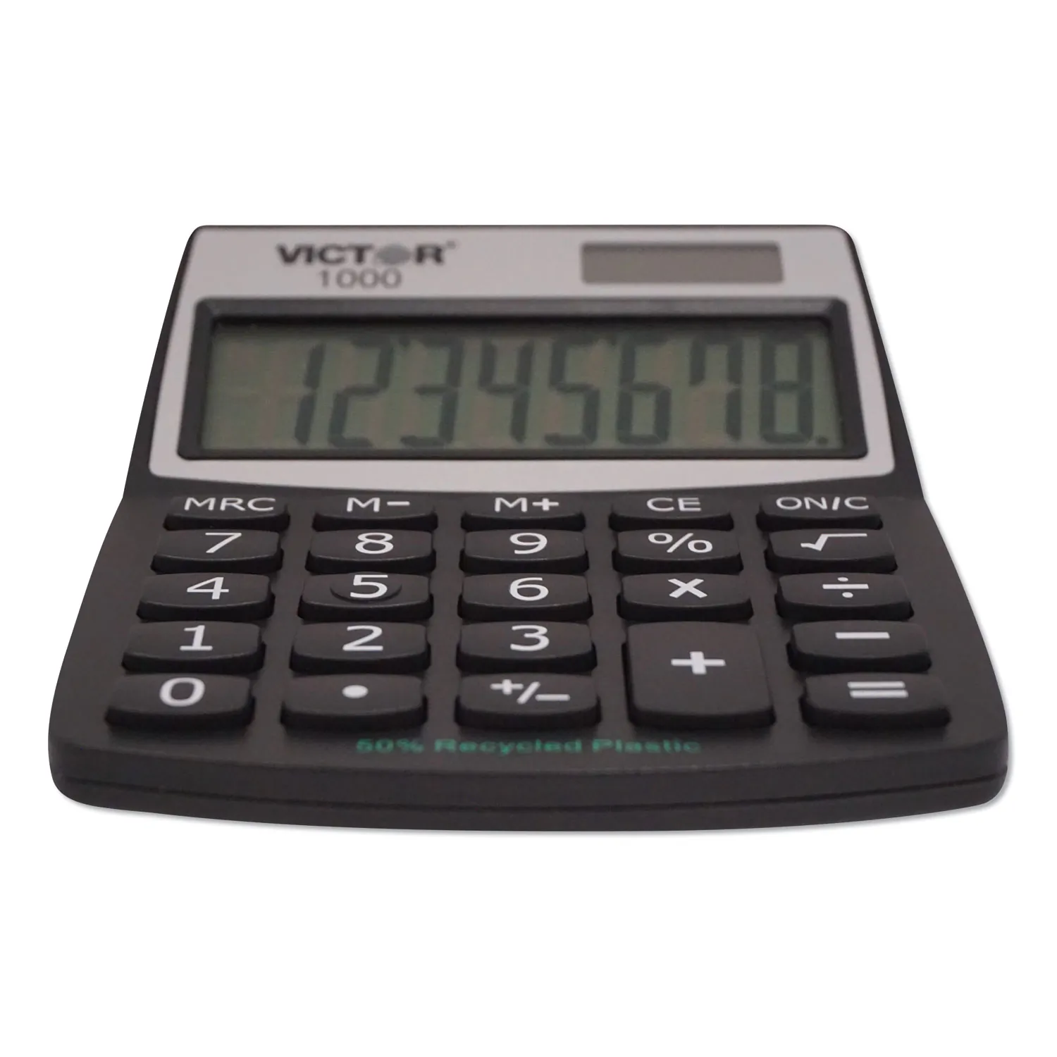 Marketing Information:Mini Desktop Calculator features a large angled, 10-digit display that is easy to read. Automatic Tax Keys calculate the tax amount to be added or subtracted to the original price. Other functions include cost/sell/margin keys, percent key, square root, change sign, and three-key independent memory. Dual-powered calculator runs on solar power with battery backup. AG13 battery is included and replaceable. Eco-friendly calculator is manufactured with post-industrial recycled plastic.