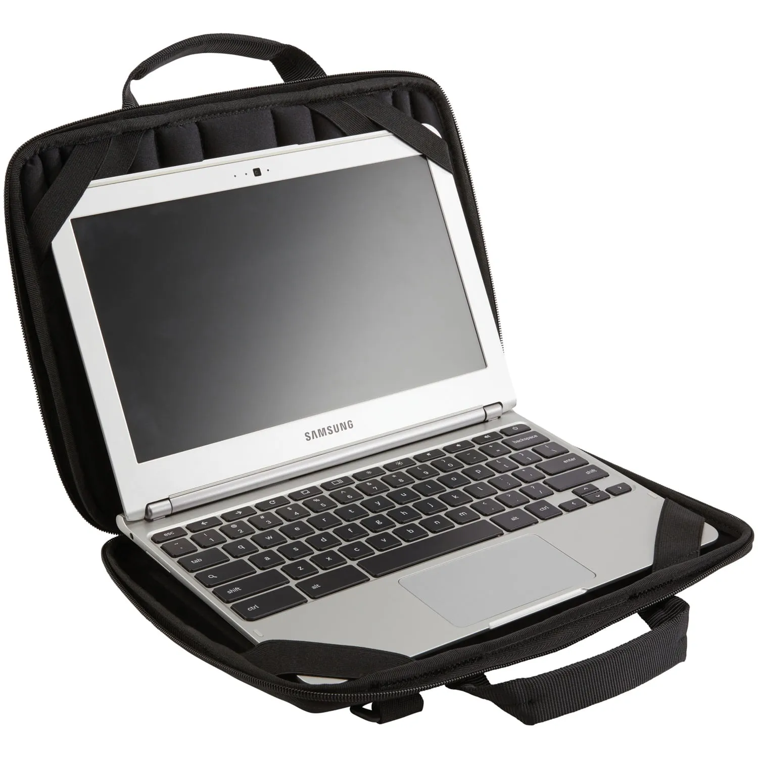 Case Logic knows the needs of today's business travelers. This Guardian Work-in Case for 11-6/10 in. Chromebook/11 in. MacBook Air is a hardshell laptop case that you can work out of. Its thick, protective padding keeps your device from sliding around. The molded ridges provide airflow channels so you can use your device without risk of overheating. This case also comes with an accessory pocket for added storage.