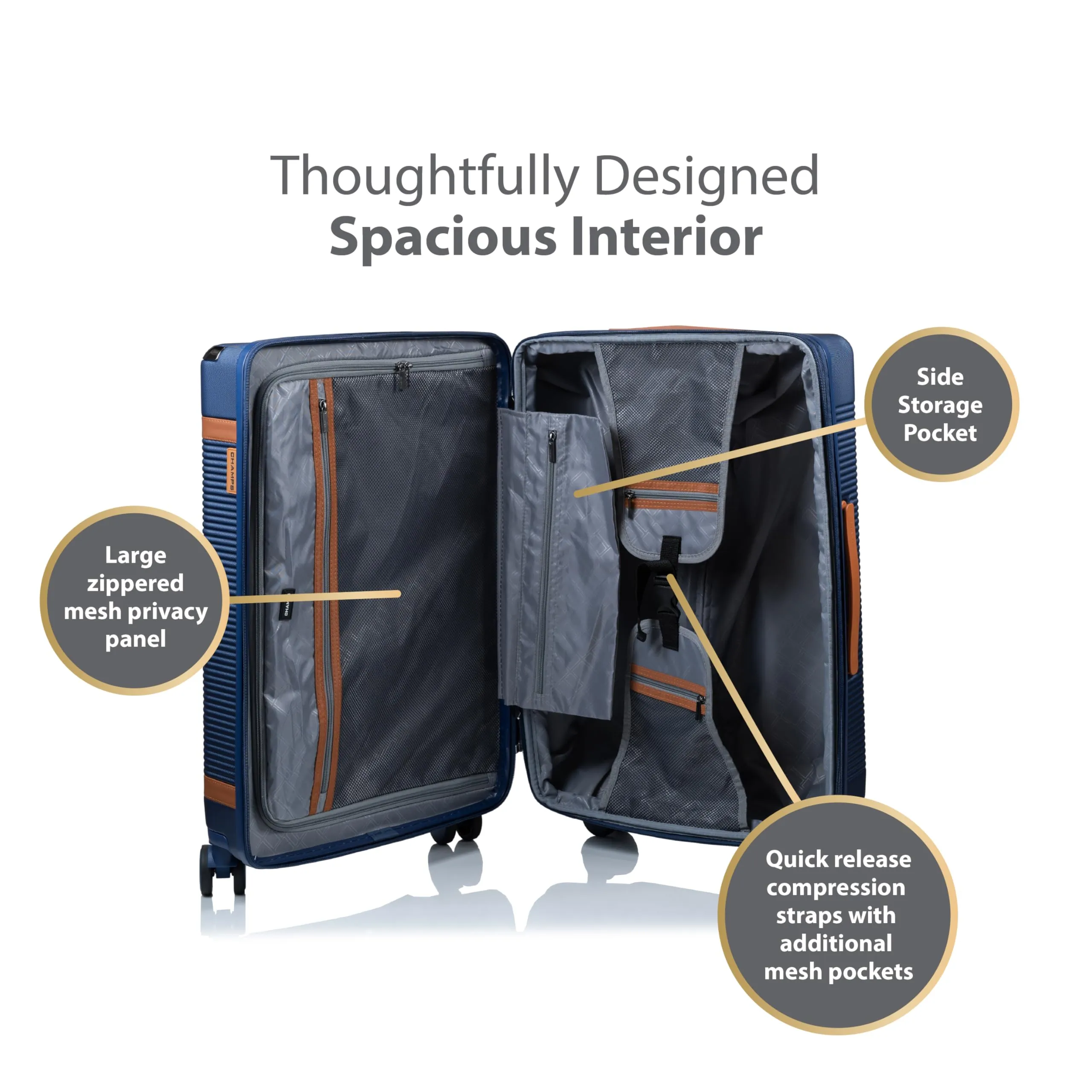 - Thoughtfully designed interior with 50/50 packing layout for easy organization