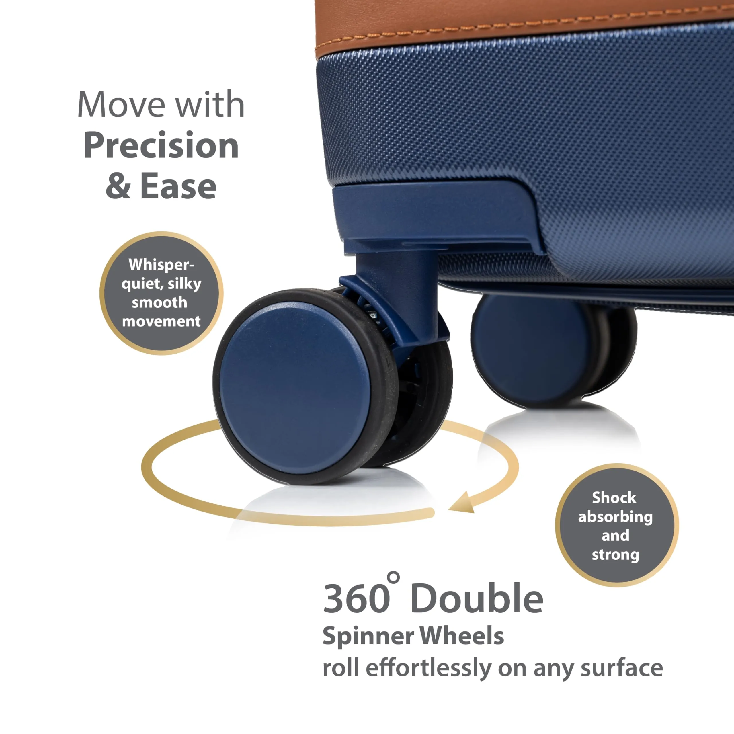 - 360-degree dual spinner wheels for effortless movement