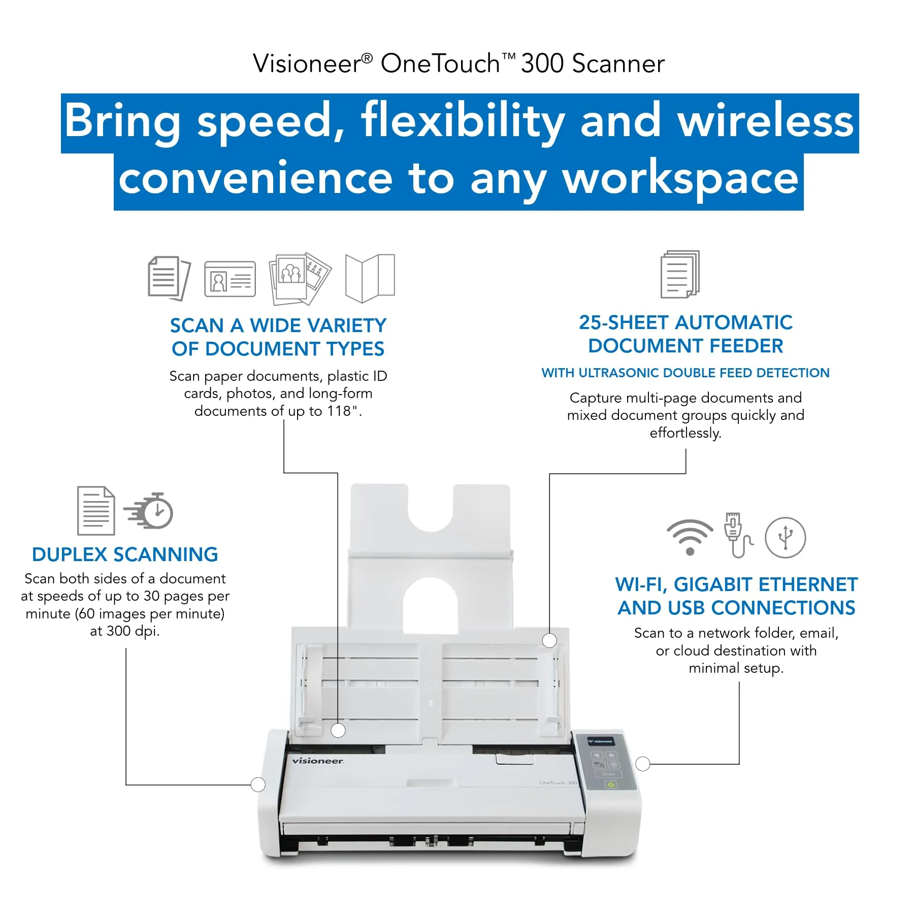 Visioneer VOT300-U Onetouch 300 Delivers Fast Duplex Scanning Up To 30 Ppm In A Compact