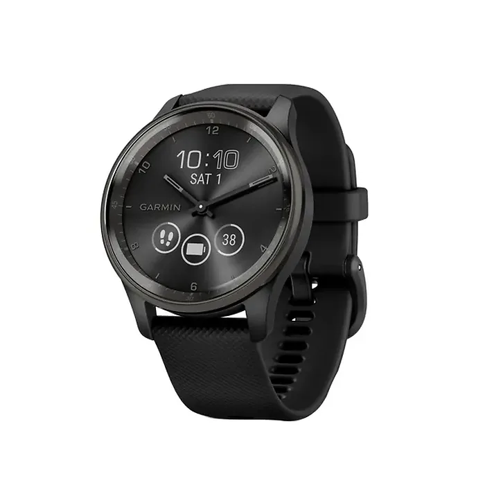 • Stylish 40 mm hybrid smartwatch with sophisticated analog look, a stainless steel bezel, and smart features;• Behind analog-style hands, you'll find full-dial touchscreen display that reacts to your movements and is visible only when you need it ;• Stay connected with smart notifications for incoming calls, text messages, calendar view, and more when paired with your Apple(R) or Android(TM) smartphone ;• Know your body better with a full suite of health monitoring features, including continuous heart rate sampling, Body Battery(TM) energy levels, Pulse Ox, sleep score, stress tracking, women's health tracking, and more; this is not a medical device, and data presented is intended to be a close estimation of metrics tracked; Pulse Ox not available in all countries;• Breeze through checkout lines and select transit systems with Garmin Pay(TM) contactless payment solution (with supported payment card);• Get insights into your everyday fitness, including tracking your steps, floors climbed, calories, and intensity minutes (data presented is intended to be a close estimation of metrics tracked);• Connects with your paired smartphone's GPS to track outdoor walk, run, or bike activities; includes additional activity profiles such as yoga, strength, cardio, and more;• Safety and tracking features include incident detection (during outdoor walks, runs and bike rides) and Assistance, both of which send messages with your live location to emergency contacts (with a compatible smartphone; should not be relied on as a primary method to obtain emergency assistance);• Enjoy convenience of wireless charging with most Qi(R)-certified charging pads (sold separately; may not be compatible with upright charging stands or wireless chargers built into vehicles);• Effortlessly change your look with 20-mm industry-standard quick-release watch bands (sold separately);• Battery life: up to 5 days in smart mode and up to 6 days in watch mode (hands tell time only);• Includes charging/data cable and documentation;• Slate Stainless Steel Bezel with Black Case and Silicone Band;