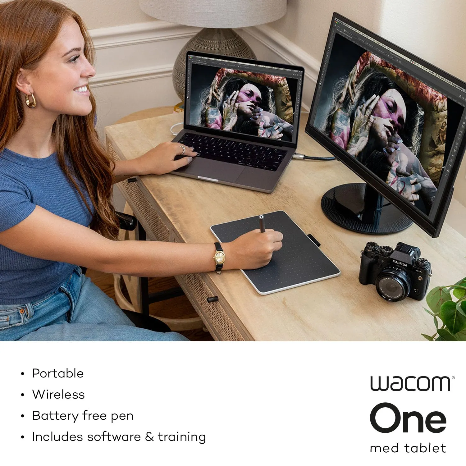 The Wacom One Medium is a versatile and innovative creative pen tablet designed for artists and designers. With its responsive pen technology and seamless integration with creative software, it enables users to bring their ideas to life with precision and ease. The tablet's compact size makes it portable for working on the go, while its smooth surface mimics the feel of traditional drawing.
