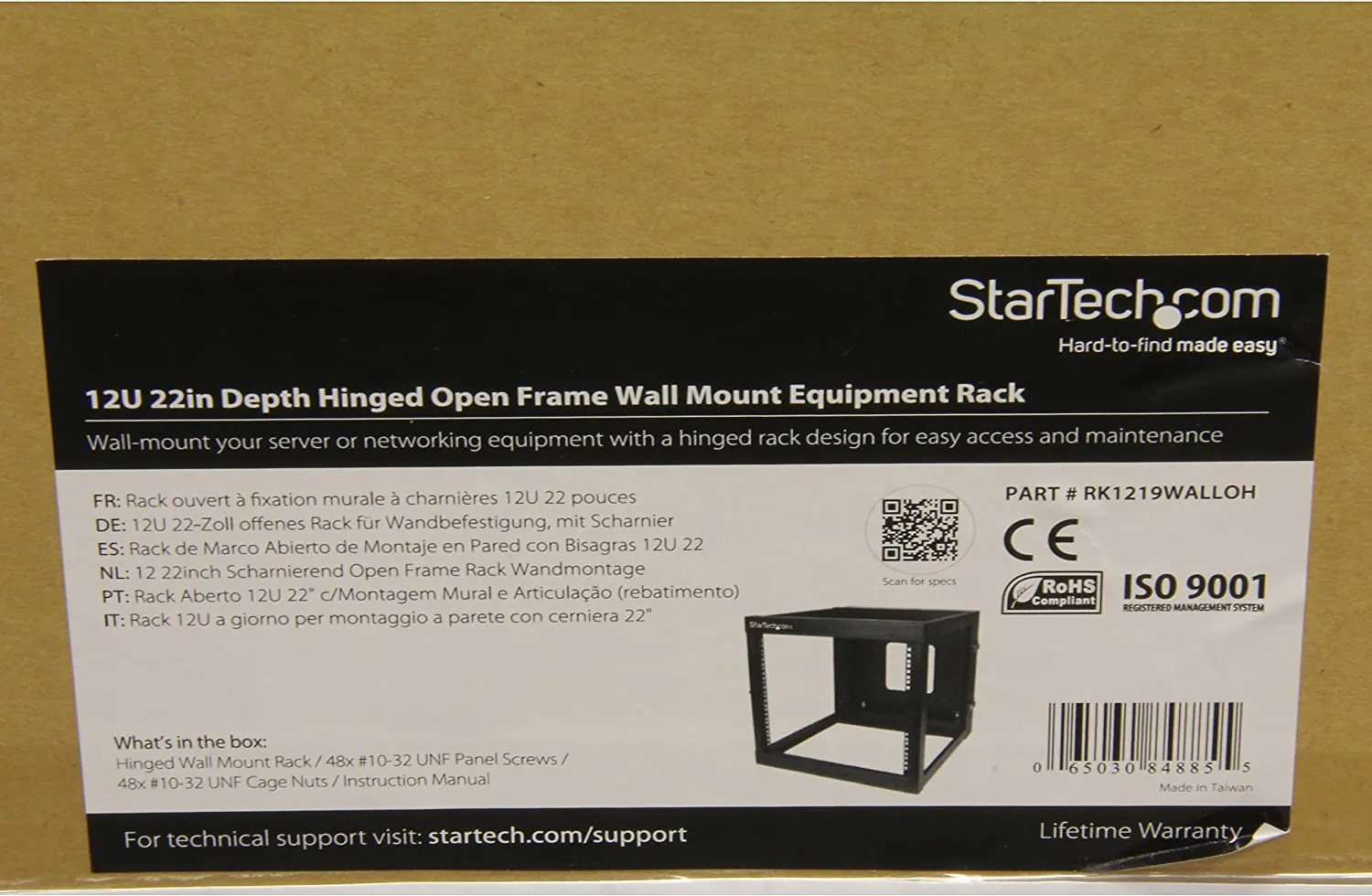 The RK1219WALLOH 12U 22in Depth Hinged Open Frame Wall Mount Server Rack lets you wall mount your (19-inch wide) servers, A/V or network equipment and features a hinged rack design that allows the entire frame to swing open for easy installation and maintenance of your equipment.