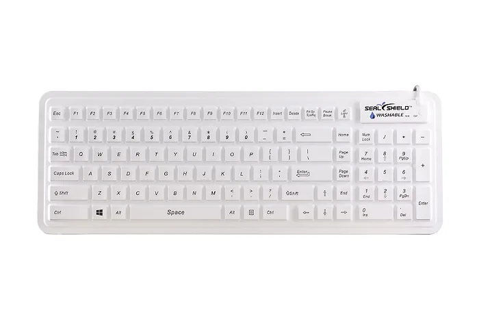 The Waterproof Backlit Silicone Keyboard is designed to provide robust functionality in demanding environments. It is 100% waterproof and dishwasher-safe, making it ideal for use in healthcare, industrial, and food service settings.