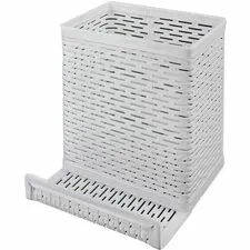 This stylish White Urban Collection Punched Metal Pencil Cup doubles as a cell phone stand. Measuring 3 1/2 X 3 1/2 inches, it is perfect for keeping your desk organized while adding a modern touch to your workspace.