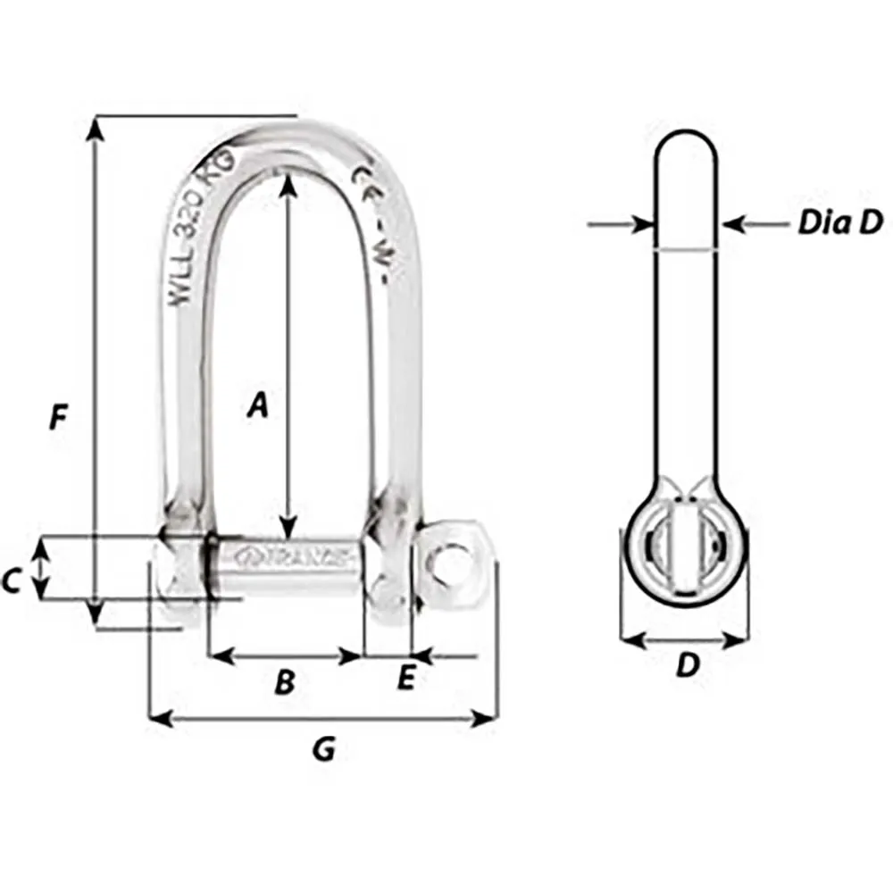 Self-Locking Long D Shackle - Diameter 5mm - 3/16"