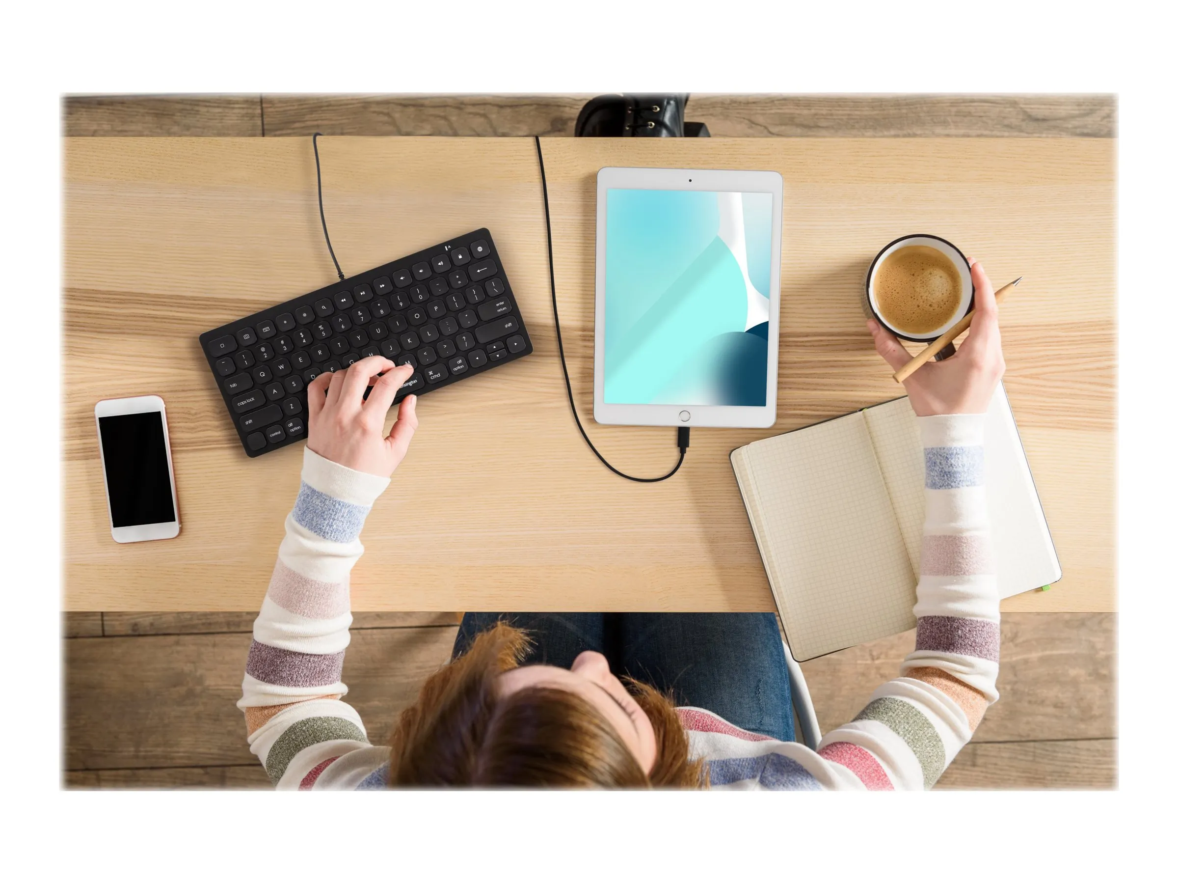 Full-sized, responsive scissor keys offer a comfortable and precise typing experience. Fourteen shortcut keys allow you to quickly navigate through common iOS keyboard commands. This durable, lightweight, and compact keyboard is ideal for daily classroom use. Caps lock indicator provides a visual signal for more efficient typing. Plug-and-play wired Apple Lightning connection delivers reliable performance without the need for software or batteries. MFi Certified so you know itrs safe to use with Apple iPad and iPhone. Additionally, the Simple Solutions Wired Compact Keyboard with Lightning Connector exceeds the privacy requirements set out by the Partnership for Assessment of Readiness for College and Careers and the Smarter Balanced Assessment Consortium. A two-year warranty means you can rest assured knowing yourre covered by Kensington.