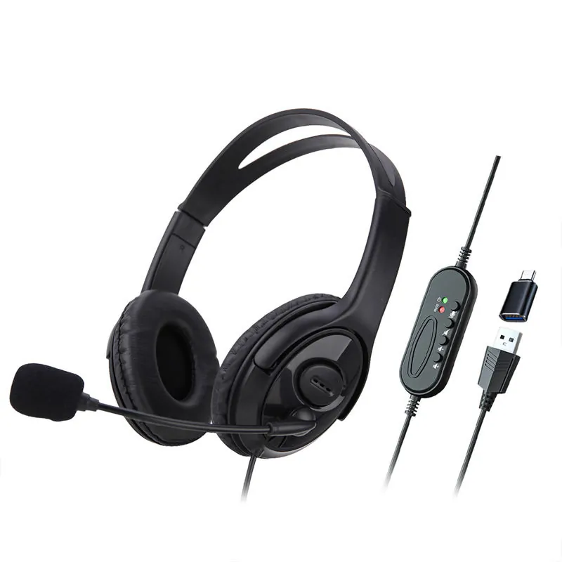 Heyybit HBHD1080P Wired Conference Headphone Usb Headsets Microphone Computer Teaching Telephone Type C Office Business Wirecontrolled Headset