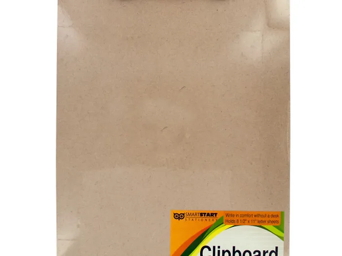 Write in comfort without a desk with this Wooden Clipboard featuring a durable composite wood board with a strong metal clip with plastic corner protectors to prevent paper from ripping. Holds 8 1/2" x 11" sheets. Measures approximately 12.5" x 9.125". Comes shrink wrapped.